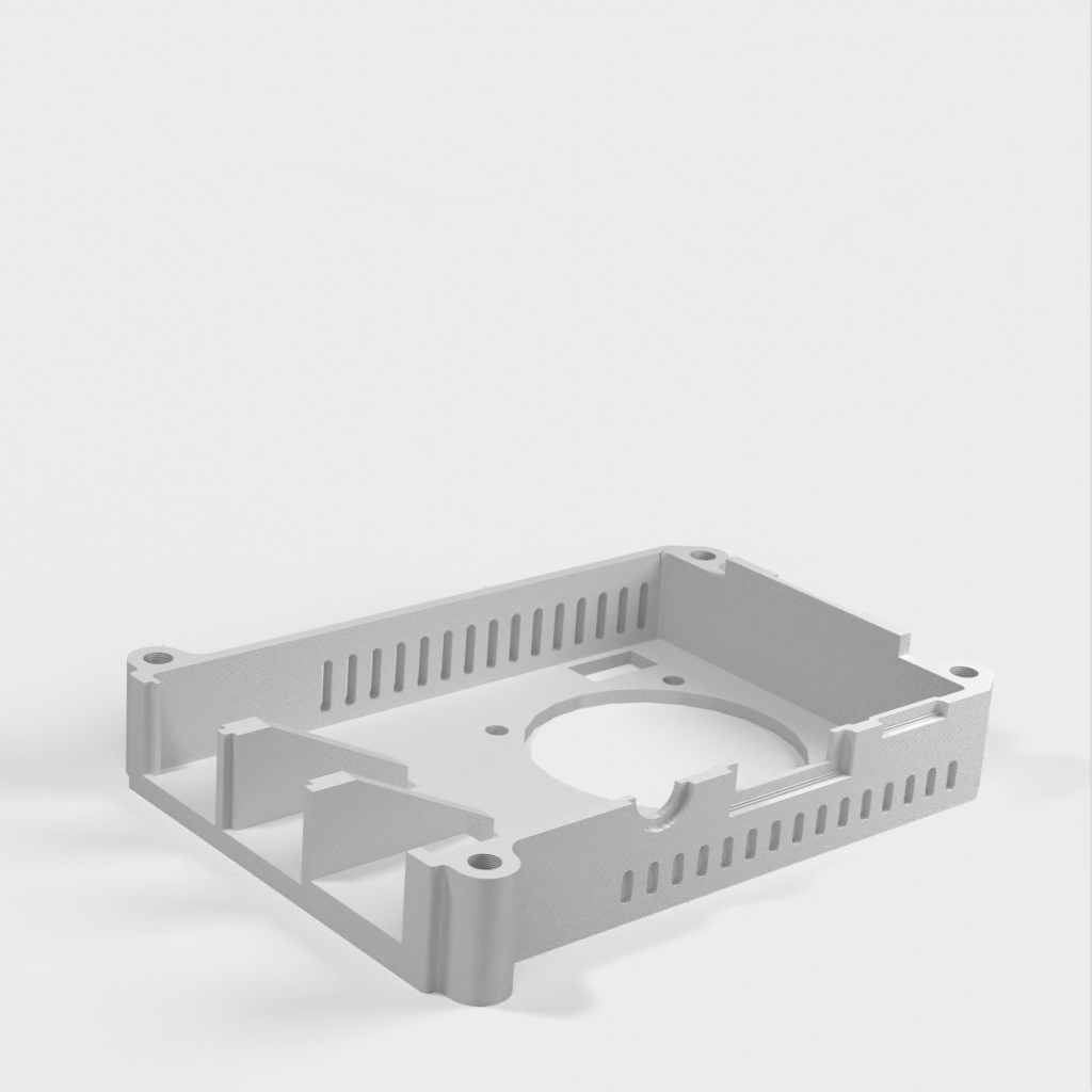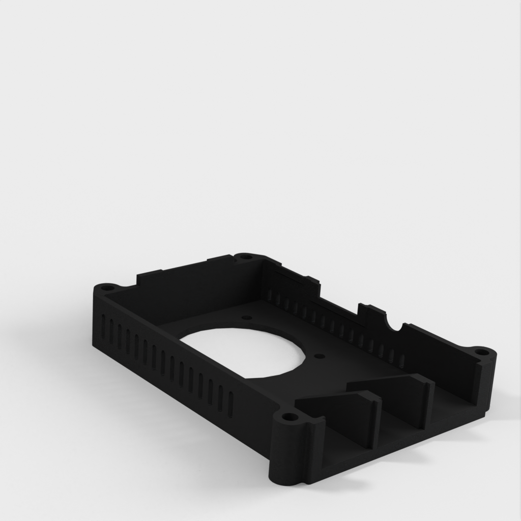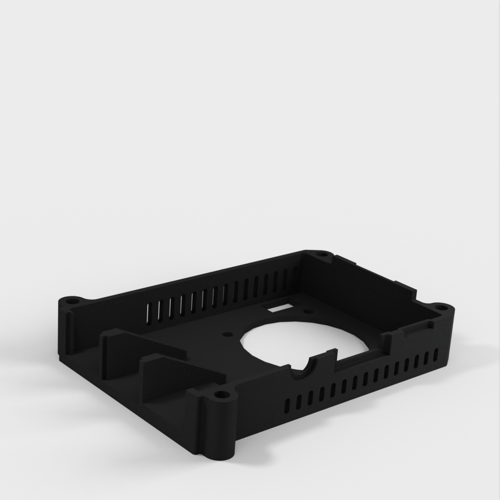 Dette er et etui til Raspberry Pi 3B med en 40mm fan, der passer til Kintaro heatsink. Etuiet reducerer standoffs i bunden, så Pi fortsat sidder på korrekt niveau på trods af anvendelsen af M2 møtrikker og bolte til montering af heatsink. Desuden giver etuiet plads til en 40mm fan og udstødningsventilationshuller på toppen, der er høje nok til at passe over en heatsink. En 40mm Noctua NF A4x20 fan kan tilføjes til etuiet, men den kan kræve et lille skub for at starte, når den er ledningsført til 5V via GPIO-headeren.