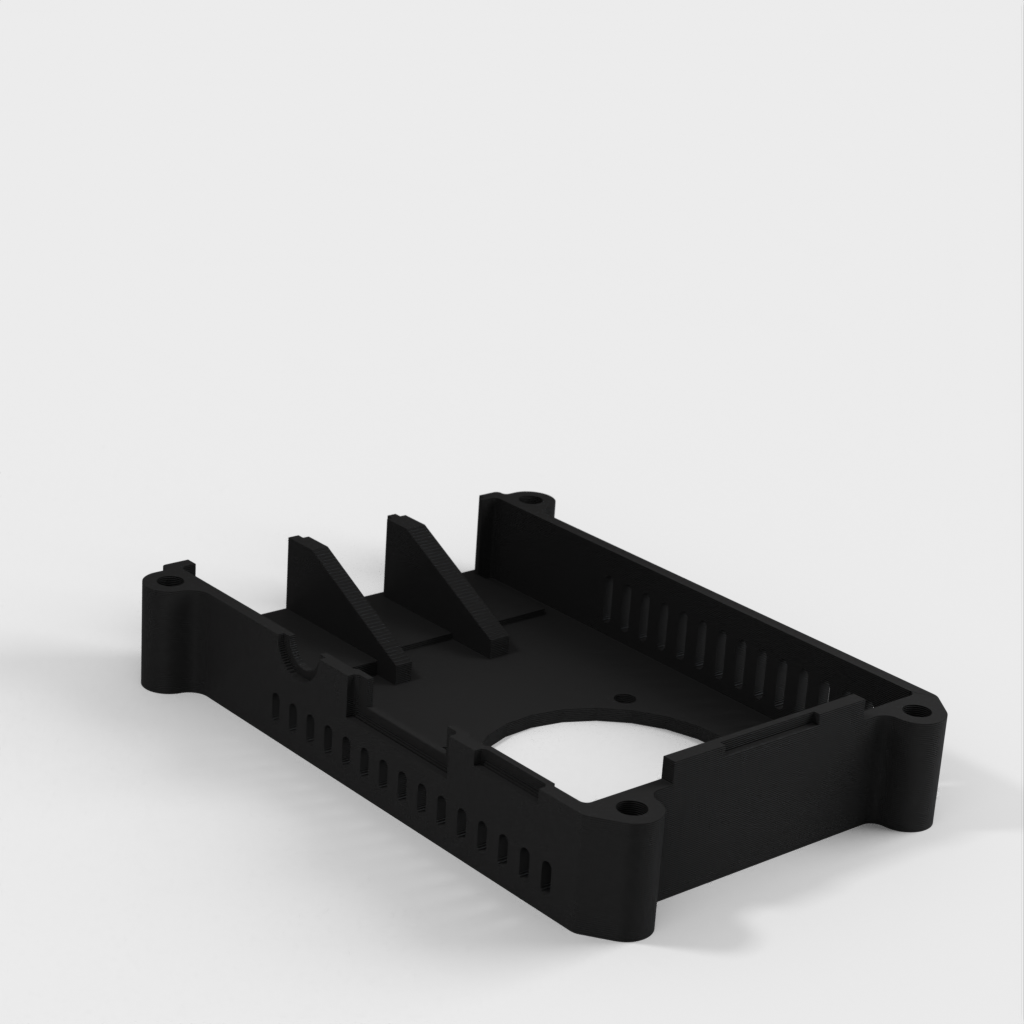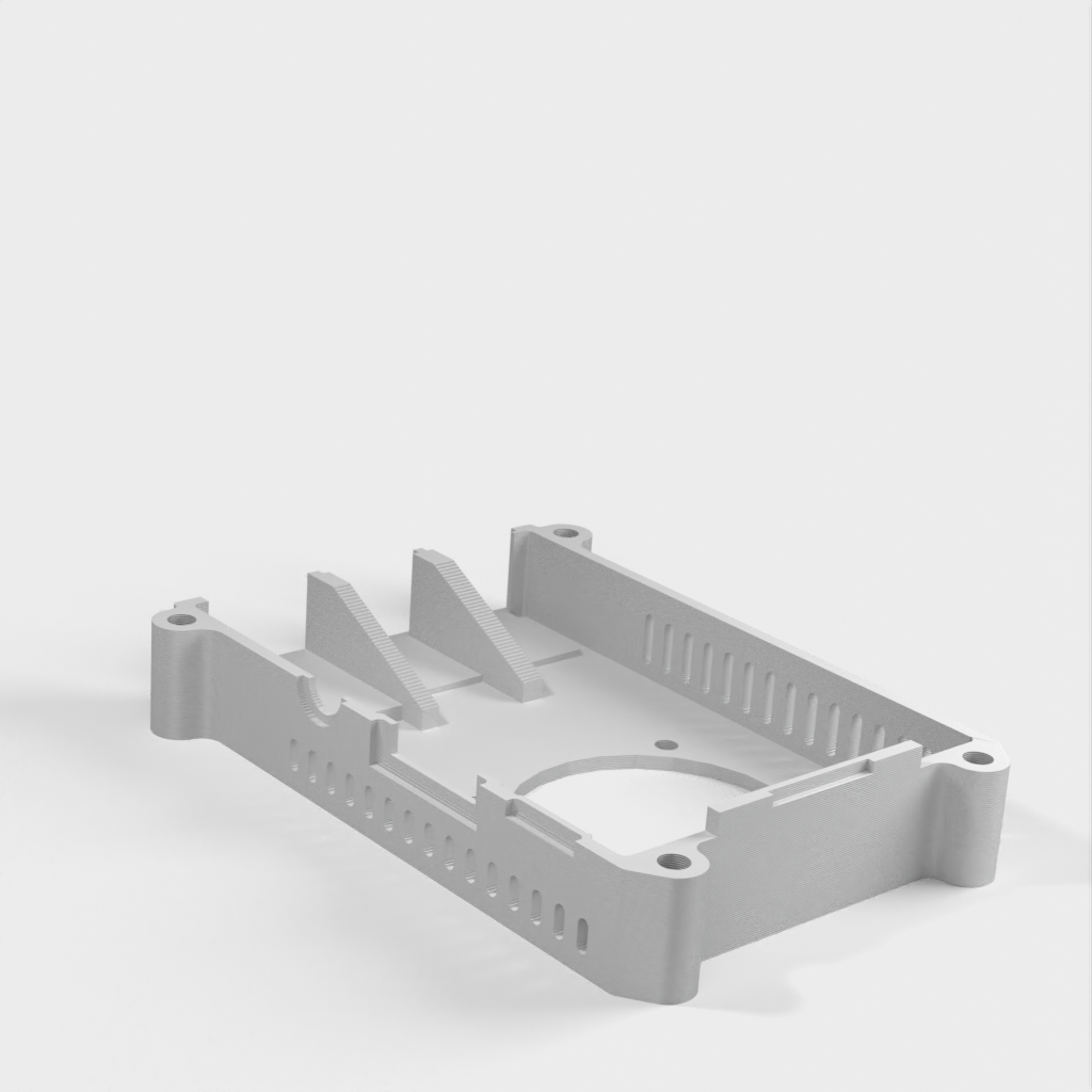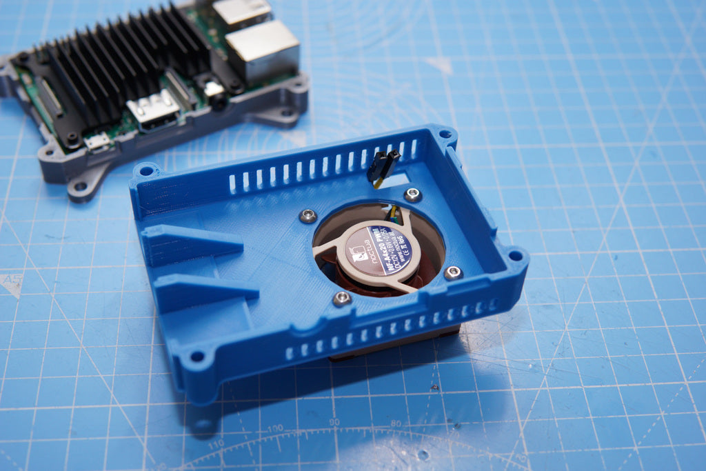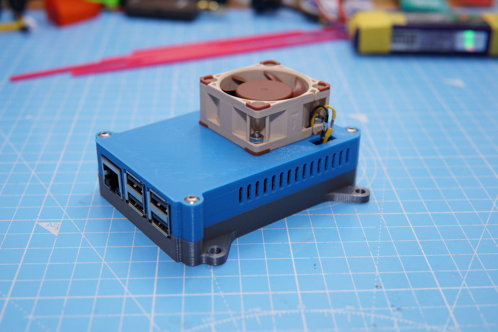 Dette er et etui til Raspberry Pi 3B med en 40mm fan, der passer til Kintaro heatsink. Etuiet reducerer standoffs i bunden, så Pi fortsat sidder på korrekt niveau på trods af anvendelsen af M2 møtrikker og bolte til montering af heatsink. Desuden giver etuiet plads til en 40mm fan og udstødningsventilationshuller på toppen, der er høje nok til at passe over en heatsink. En 40mm Noctua NF A4x20 fan kan tilføjes til etuiet, men den kan kræve et lille skub for at starte, når den er ledningsført til 5V via GPIO-headeren.
