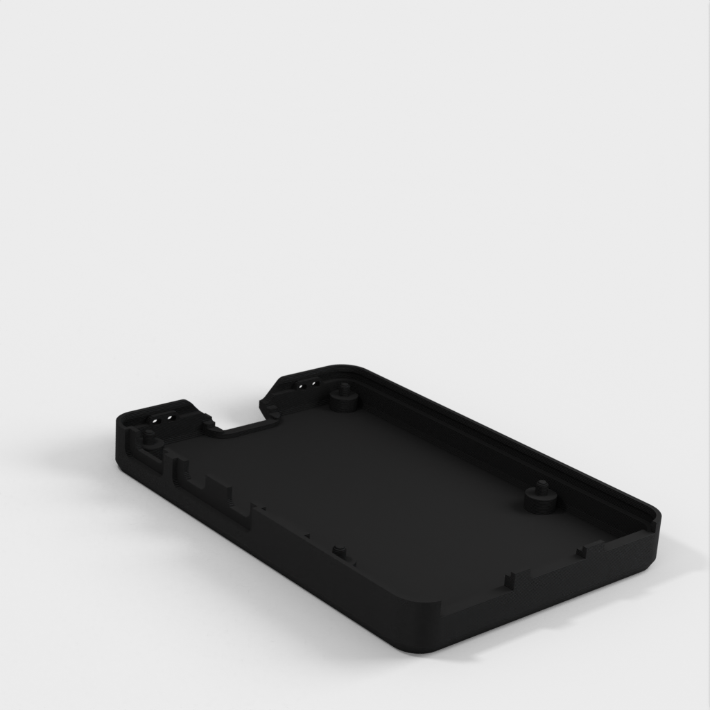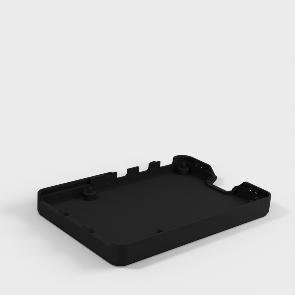 Enkel kabinet til Raspberry Pi 5 fra 2023. Ændringer inkluderer omplacerede USB- og LAN-stik, fjernet hovedtelefonstik og tilføjet en lille åbning for reset-knap. Der er tilføjet ventilationshuller, der passer til den originale køler.