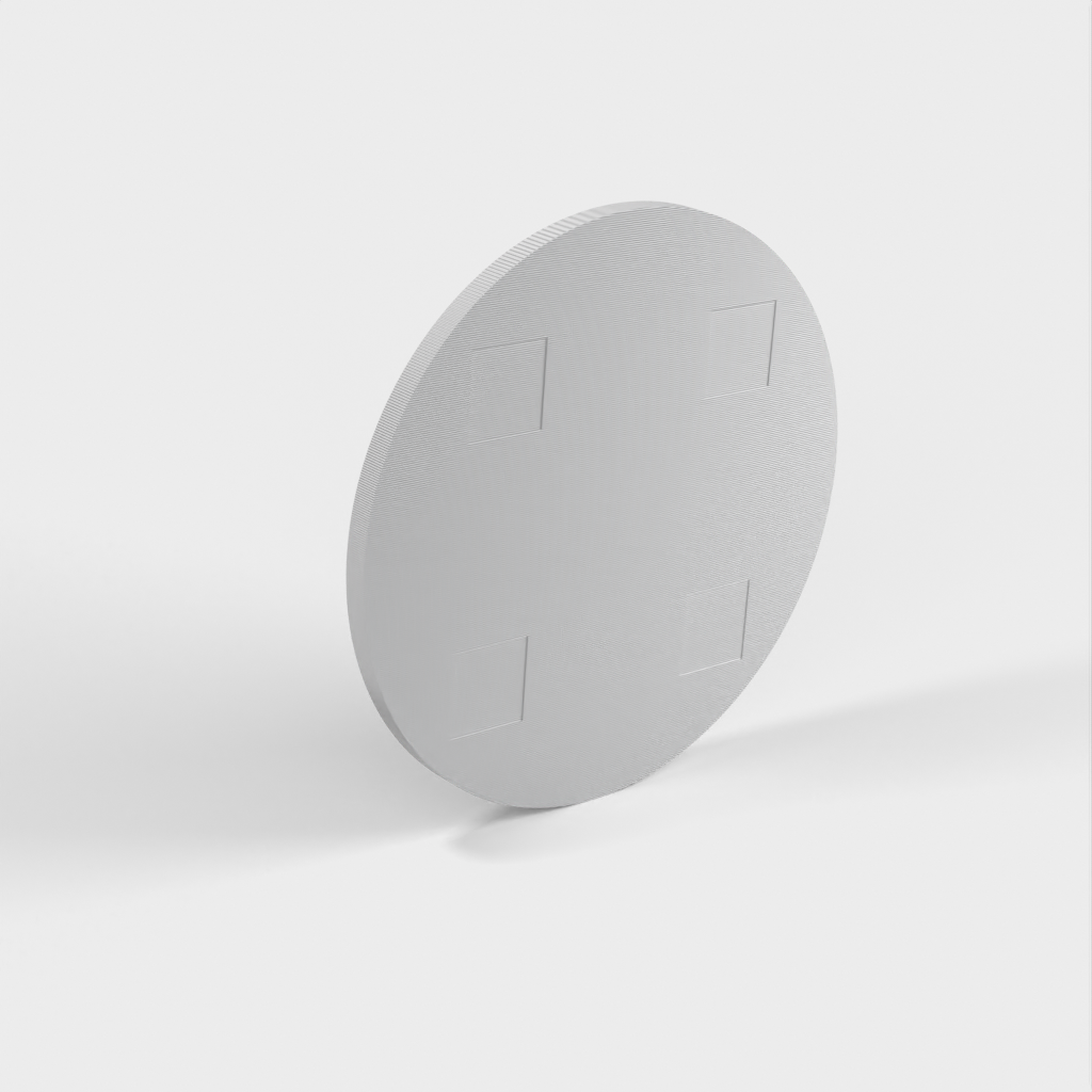 Bunden af basen har fordybninger til tynd dobbeltklæbende tape, så basen kan sidde fladt på et skrivebord eller væg.