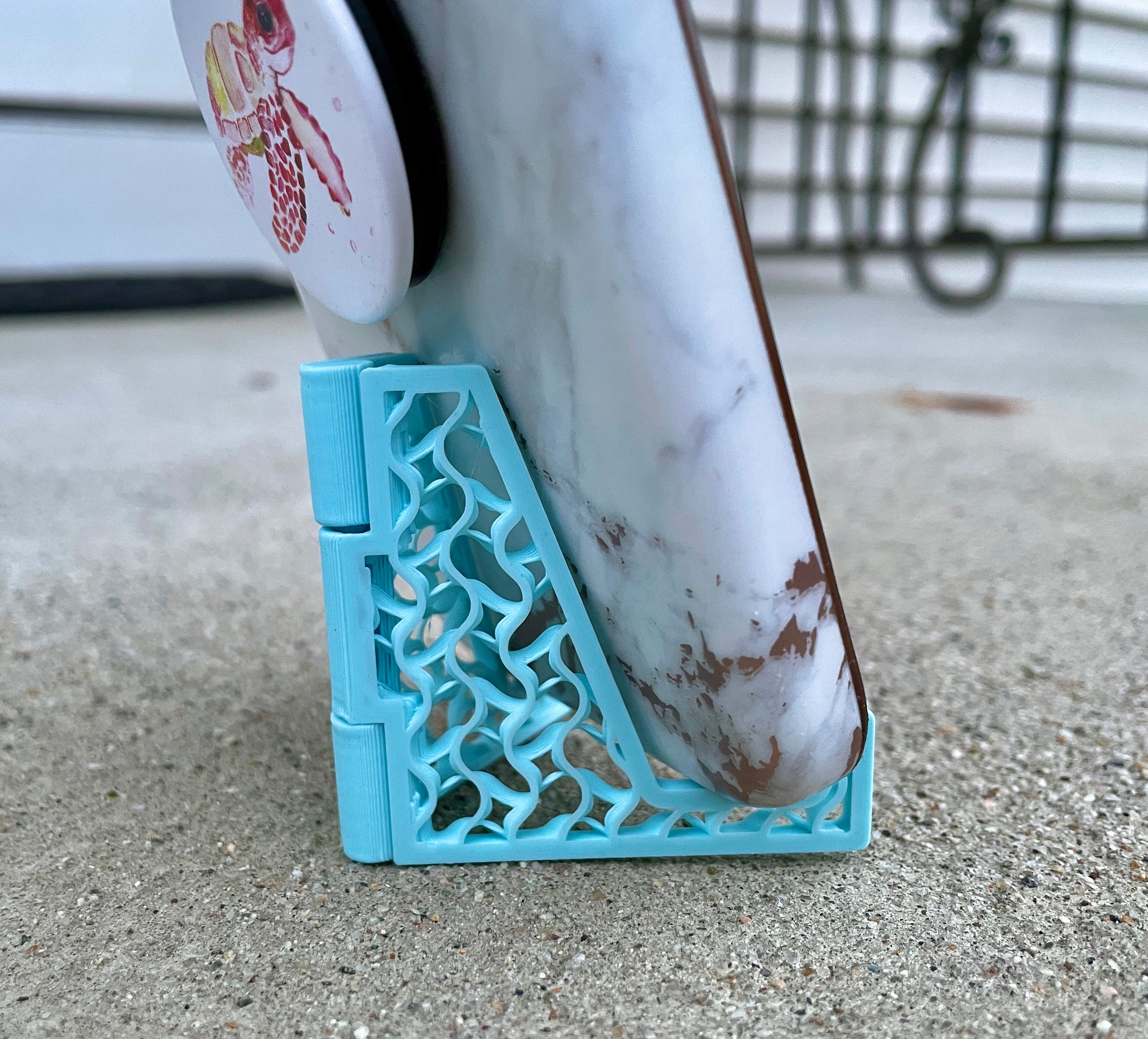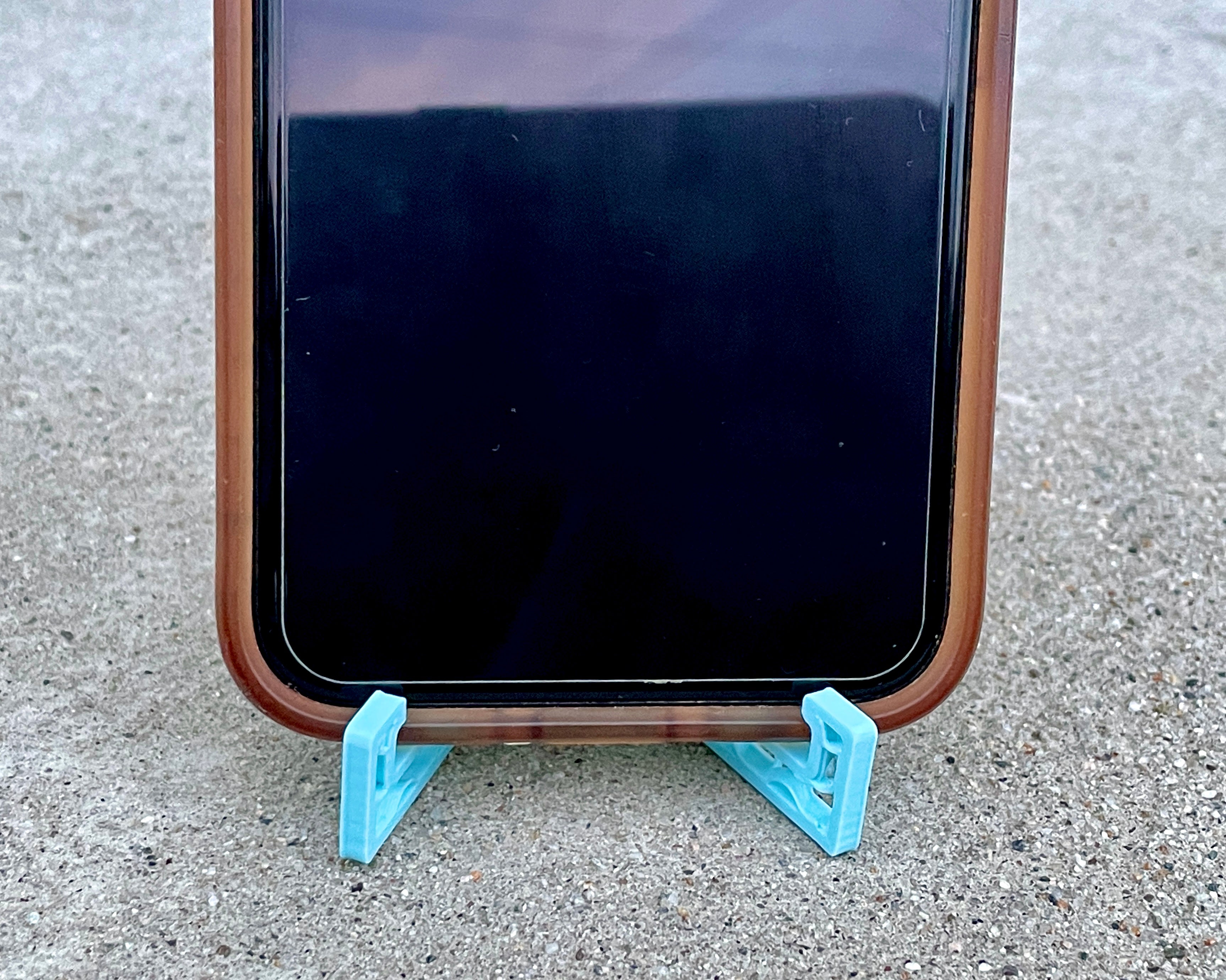 Dette er en minimalistisk print i stedet for en sammenklappelig telefonholder. Designet til hurtig og nem brug, dette produkt er ideelt til dem, der har brug for en simpel, men effektiv måde at holde deres telefon på.
