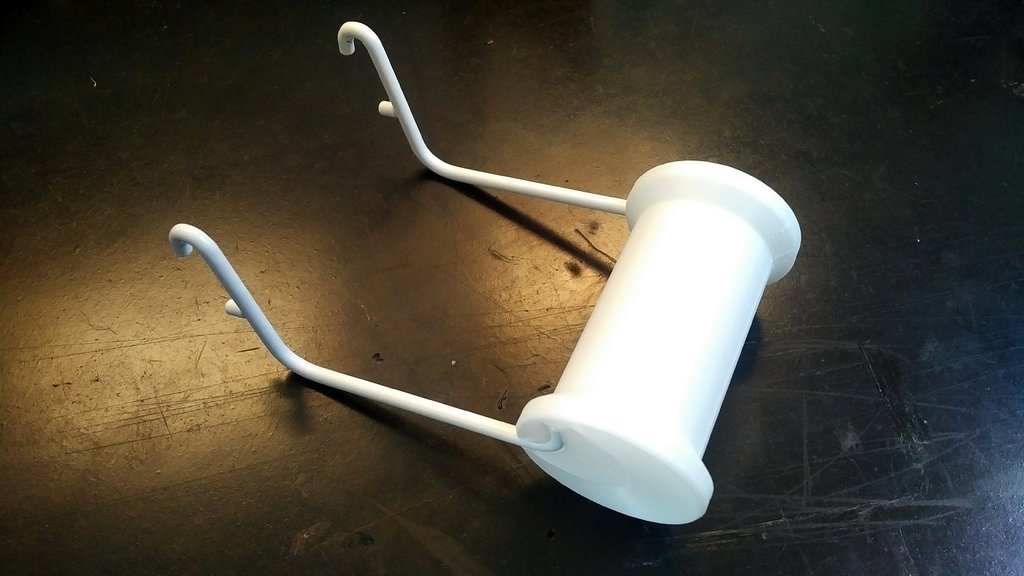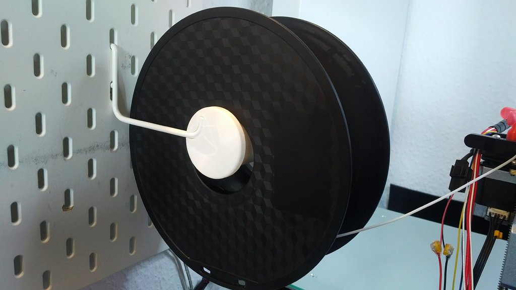 Dette er en SKÅDIS filament spole-holder til knager. Det gør det nemmere at styre dine spoler på dit SKÅDIS pindebræt. Produktet hjælper med at holde dit arbejdsområde organiseret og gør det lettere at nå dine filament spoler.