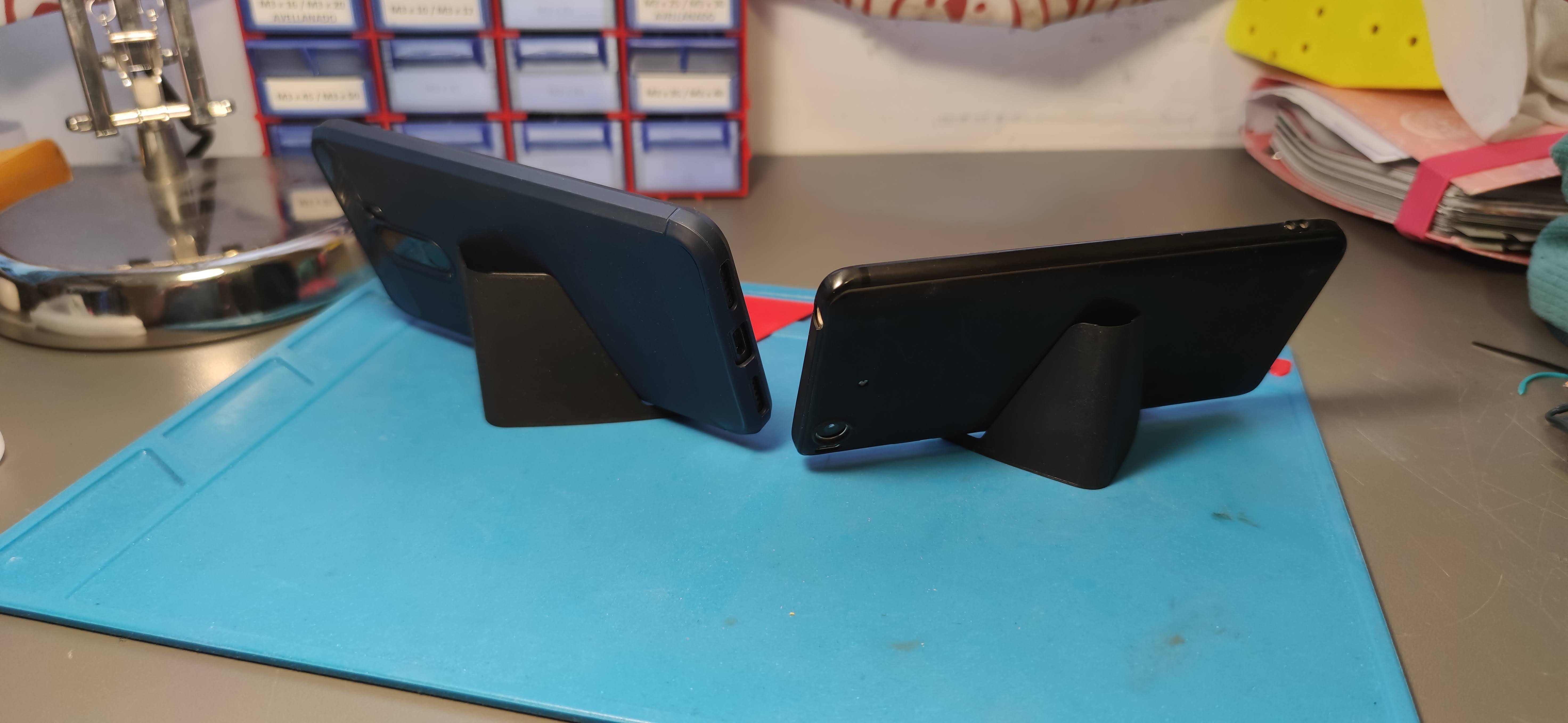 Dette er en bærbar og let telefonholder, der passer under din telefonetaske. Perfekt til børn, når du er ude og har brug for at holde telefonen på en eller anden måde. Trods sin tilsyneladende skrøbelighed, er den meget modstandsdygtig, og telefonen holder perfekt. Du kan ændre visningsvinklen ved at lukke eller åbne benene. Der er to versioner til rådighed, en til store telefoner (6-7 tommer) og en til små telefoner (4-5 tommer), så du kan vælge den, der passer bedst til din telefon.