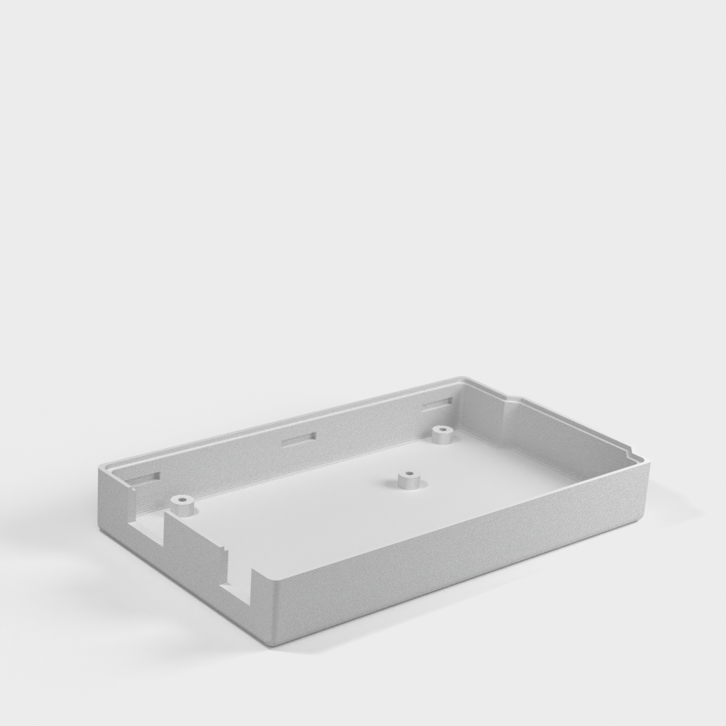 Et passende etui til Arduino Mega 2560 med skruebordsmonteringer og en snaptop. Shields kan installeres oven på etuiet. Der er fire huller på toppen til visning af de fire LED'er på Arduino-boardet. Disse huller kan rumme Bivar PLP2-250 lysrør for et mere poleret udseende.