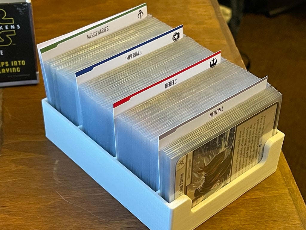 Desuden kan alle spilkort placeres i en af de store expansionsæsker, såsom Hoth, Jabba eller Coruscant, hvilket giver en praktisk løsning for kortopbevaring og samtidig holder alle kortene samlet. Mappefliser og tokens kan organiseres i kernenæsken.
