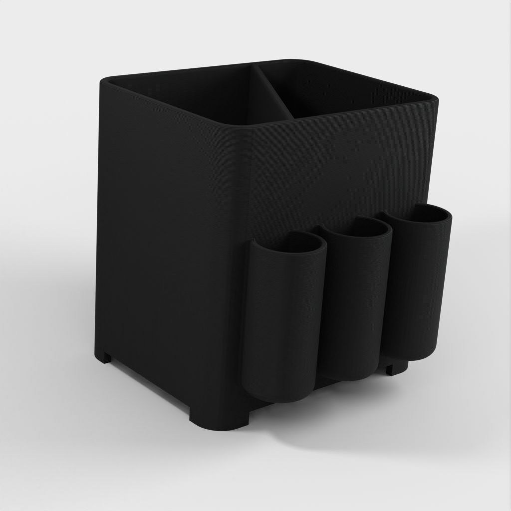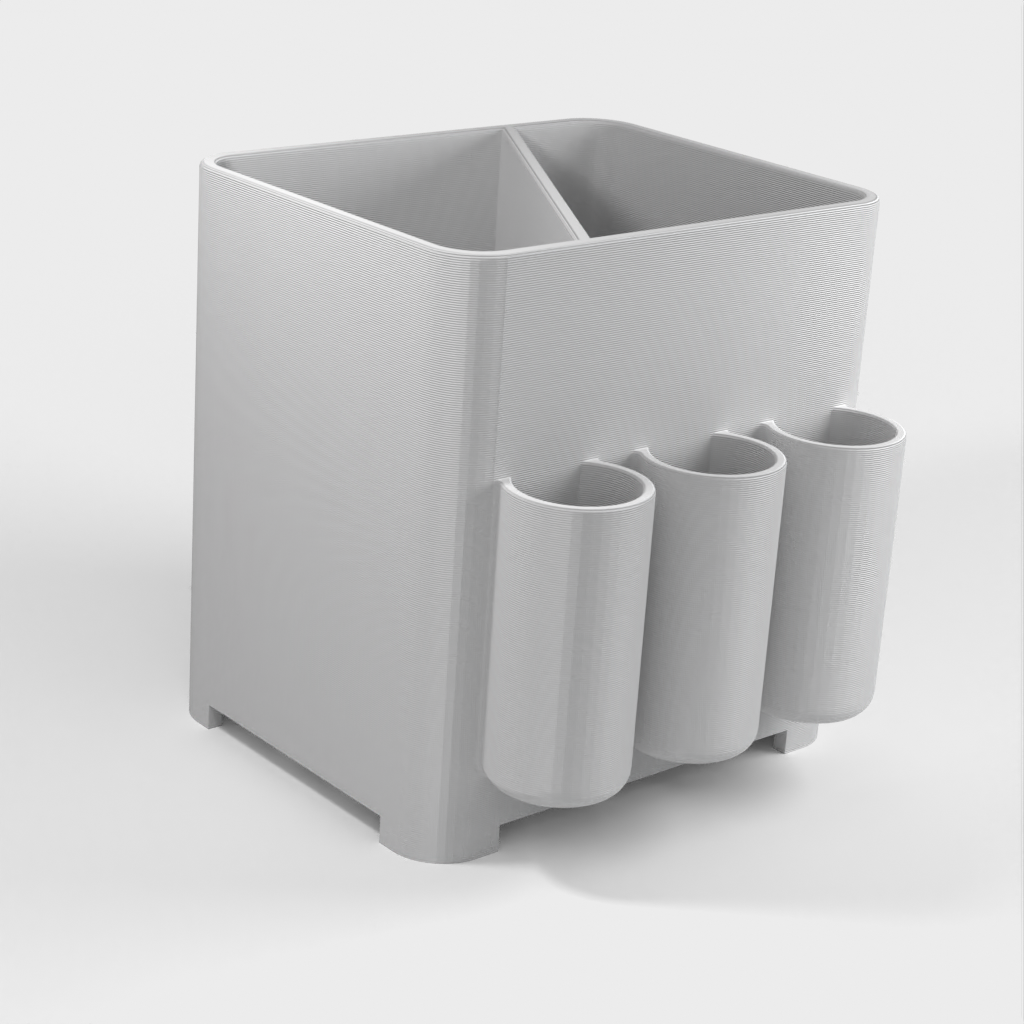 Enkel tandbørsteholder til opbevaring af tandbørste, tandpasta og barberblade. Holderen sikrer, at dine toiletartikler er organiseret og let tilgængelige.