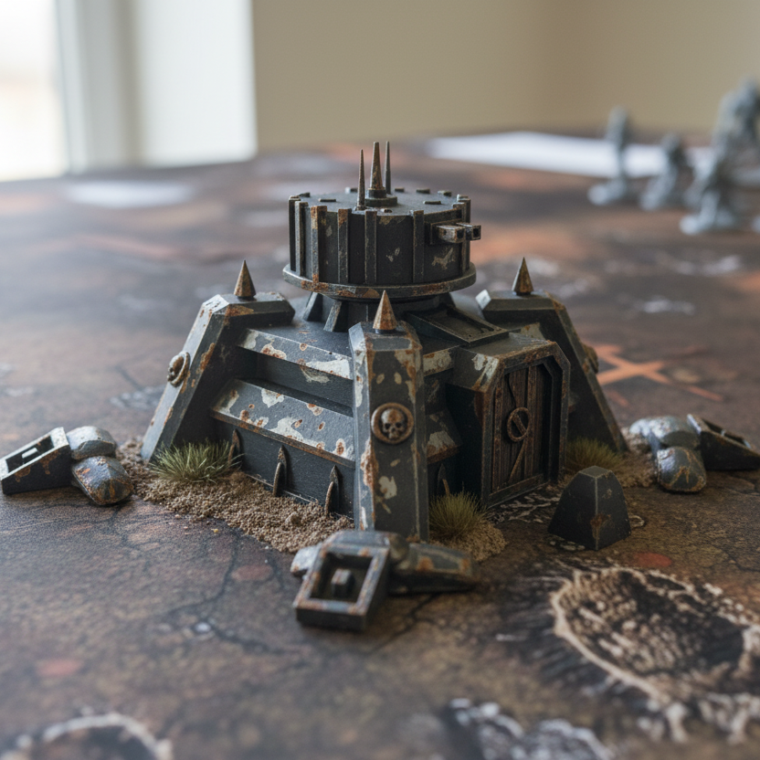 Dette udkigstårn fra Apocalypse Fortress-kollektionen tilføjer et strategisk element til dit bordspil. I dystopiske eller grimdark-miljøer giver det dine enheder en formidabel udsigt og vigtig dækning. Det detaljerede terræn skaber et visuelt centrum på din spilleplade og beriger spillets fortælling.
