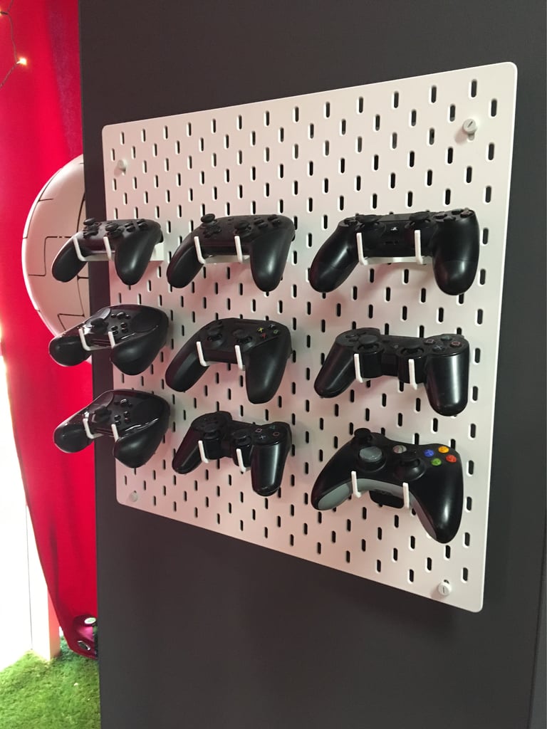 Dette er et universalcontrollerhåndtag, der er passende til IKEA SKÅDIS-tavler. Med sin alsidighed kan det understøtte flere typer controllere, herunder Xbox 360 og One, Playstation Dualshock 3 og 4, Nintendo Pro, Steam, NVidia og SteelSeries Nimbus. Det er designed til let at kunne fastmonteres på SKÅDIS tavler, hvilket giver en intuverende og organiseret måde at opbevare dine controllere på.