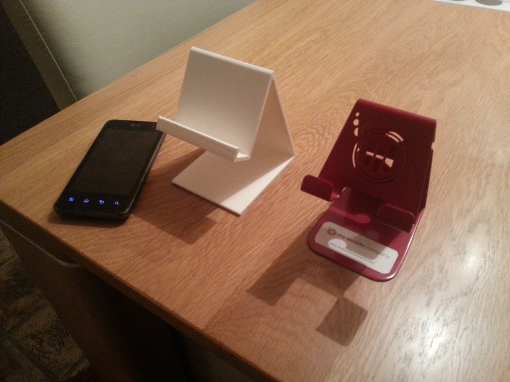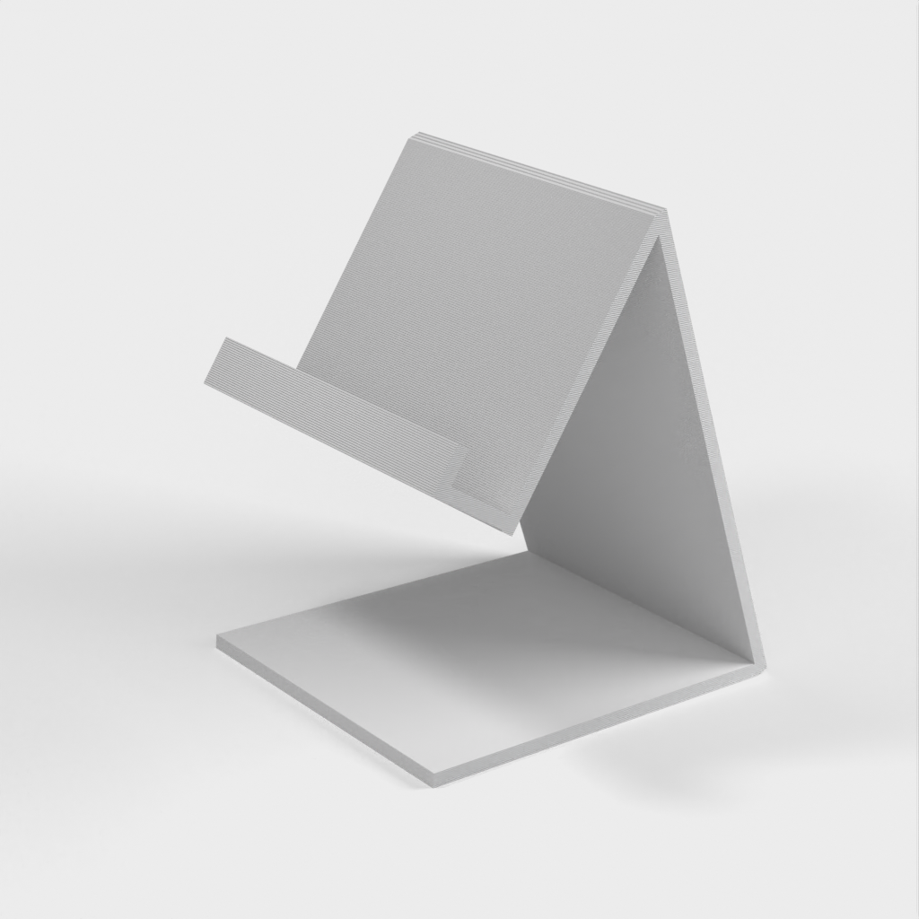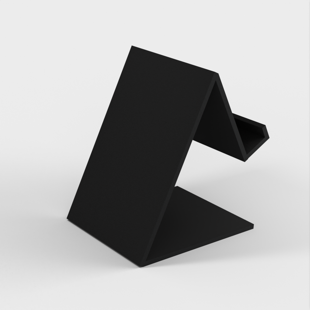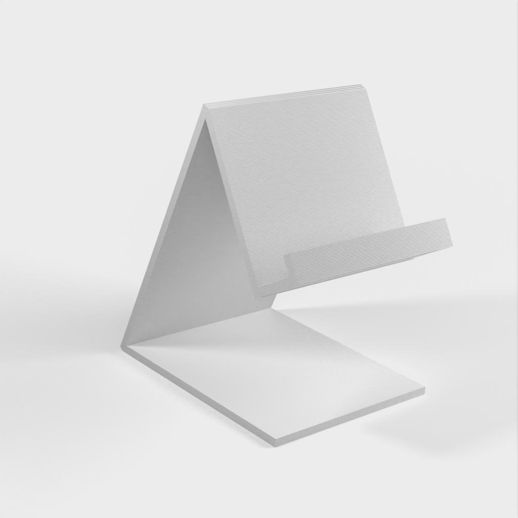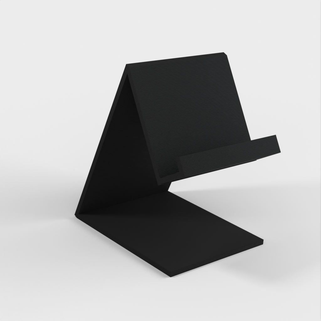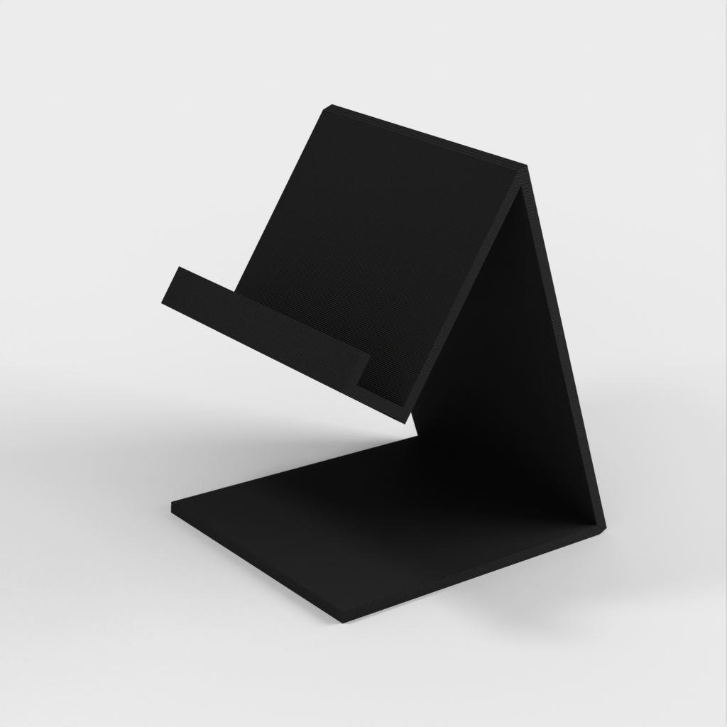 Universal mobiltelefonstander fremstillet med openscad. Standeren er designet til at passe til forskellige typer mobiltelefoner og giver dig mulighed for nemt at placere og bruge din telefon på et fast underlag.