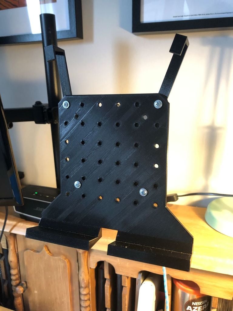 Simpel og smart VESA-monteringsholder til iPad og lignende tablets, der gør det nemt at fastgøre din tablet til en monitorarm med VESA-beslag. Dette skaber ekstra plads på dit skrivebord og holder din iPad/tablet sikkert på plads, samtidig med at du kan justere vinklen, som du ønsker. Holderen har også en central kanal til opladningskabel, hvilket gør det nemt at oplade, mens din iPad/tablet er i portræt-tilstand.