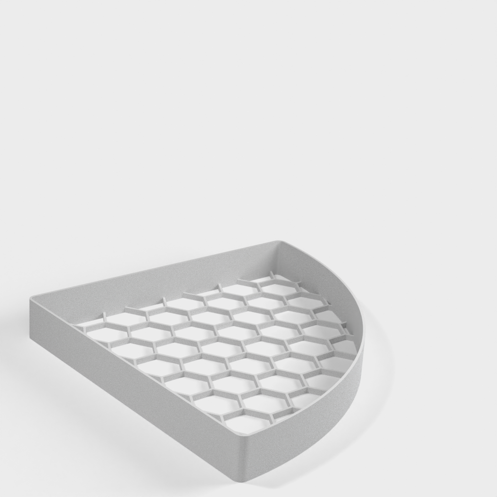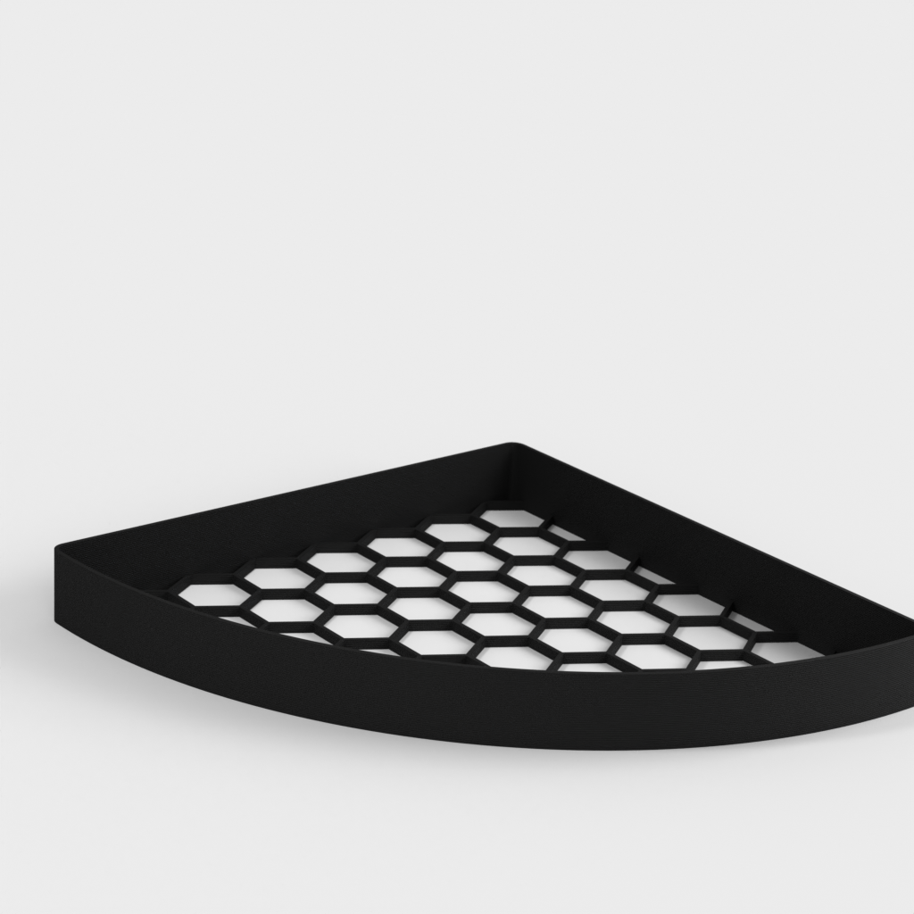 Denne hjørnehylde er specielt designet til både badeværelser og køkkener og kan let monteres på væggen ved hjælp af dobbeltsidet Gekkotape. Hylden er robust og holdbar, samtidig med at den vejer meget lidt, hvilket gør den ideel til opbevaring af små genstande såsom sæbe, shampoo, krydderier og meget mere. Hylde er lavet af hvid PETg-plast, hvilket giver ekstra styrke og en lang levetid. Derudover er den udstyret med et aftageligt BIQU magnetisk bord, som kan være praktisk til ophængning af metalgenstande.