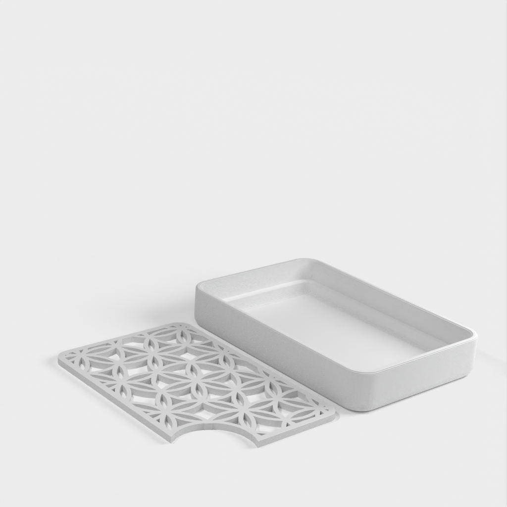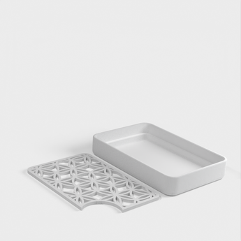 Dette er en praktisk og elegant sæbeskål, designet med fast bund og en skåret hjørne for let at kunne hælde overskydende vand ud. Den unikke struktur gør det nemt at opbevare din sæbe og holde den tør mellem brugen, hvilket forlænger sæbens levetid og holder dit badeværelse pænt og ryddeligt.