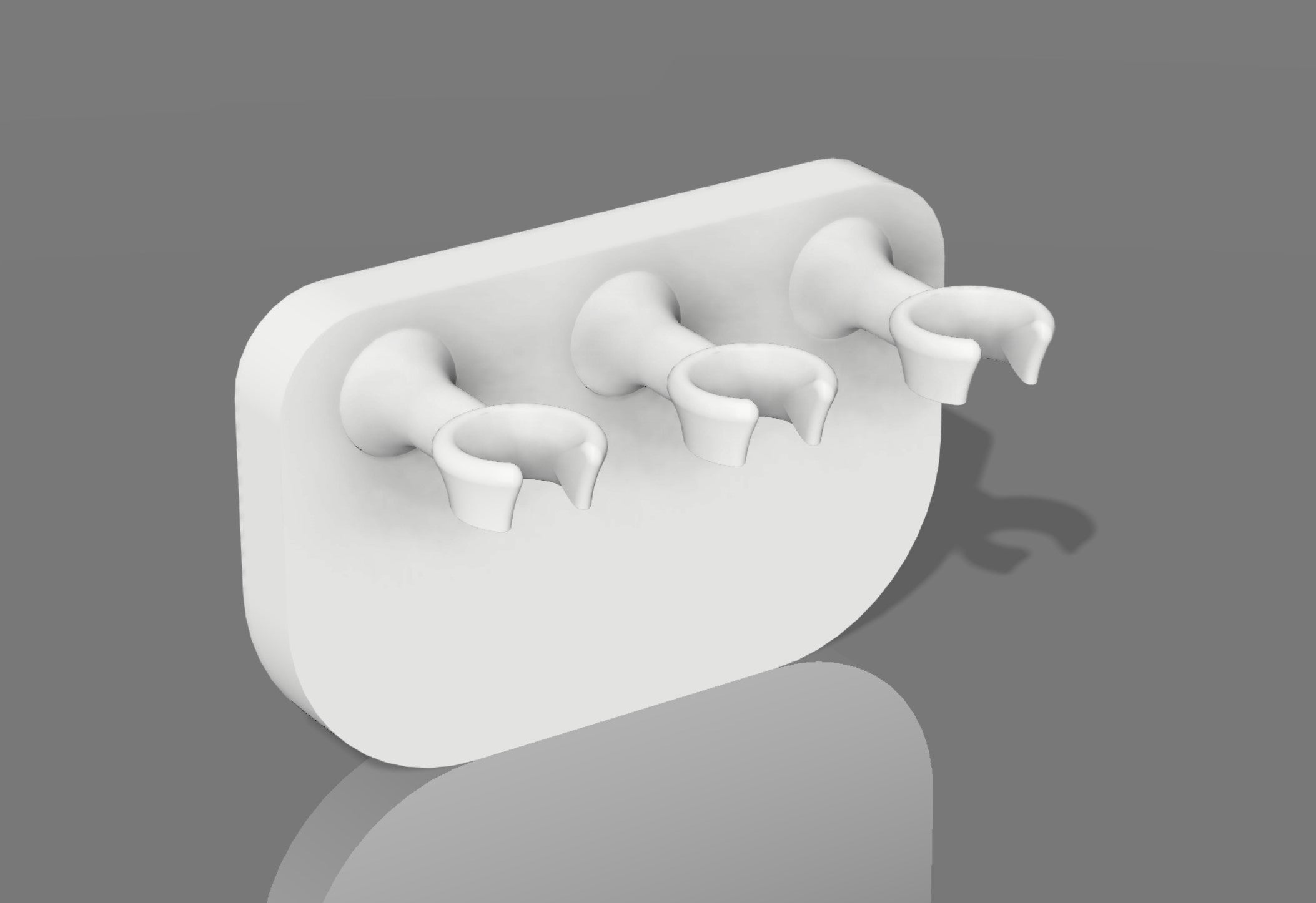 Sonicare tandbørsteholder kan monteres direkte på væggen eller i et skab ved hjælp af dobbeltklæbende tape. Hæng tandbørstehovederne så de vender nedad, dette lader eventuelt vand dryppe af tandbørsten i stedet for at løbe ned ad stammen.