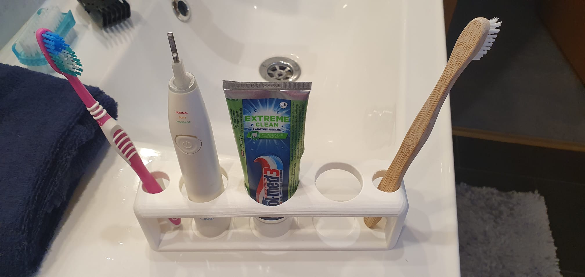 Tandbørsteholder til 2 normale og 2 elektriske tandbørster med plads til tandpasta