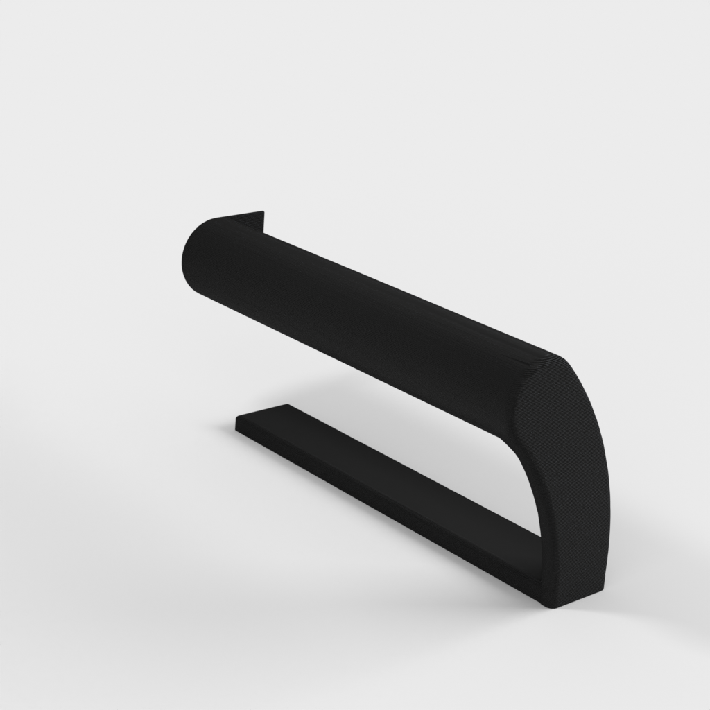 Sort toiletpapirholder til badeværelset. Denne toiletpapirholder er let at fastgøre direkte til væggen med dobbeltsidet tape, hvilket gør installationen hurtig og nem uden brug af en boremaskine. Den er forsynet med hjørneforstærkninger for at øge stabiliteten og holdbarheden, hvilket sikrer, at din toiletpapirholder vil holde i lang tid.