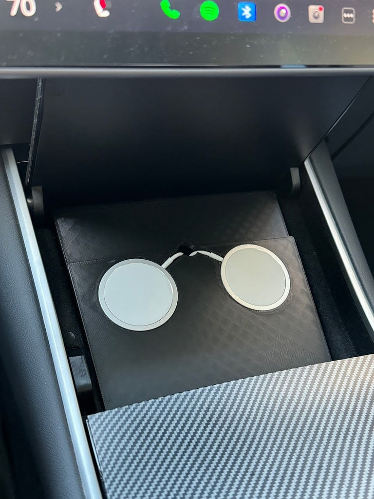 Tesla Model 3 MagSafe Oplader Pad er en specialdesignet opladningsplatform til Tesla Model 3 fra 2017 til 2020. Denne 3d printet trådløse opladerpad er let at installere og passer perfekt til bilens placering.