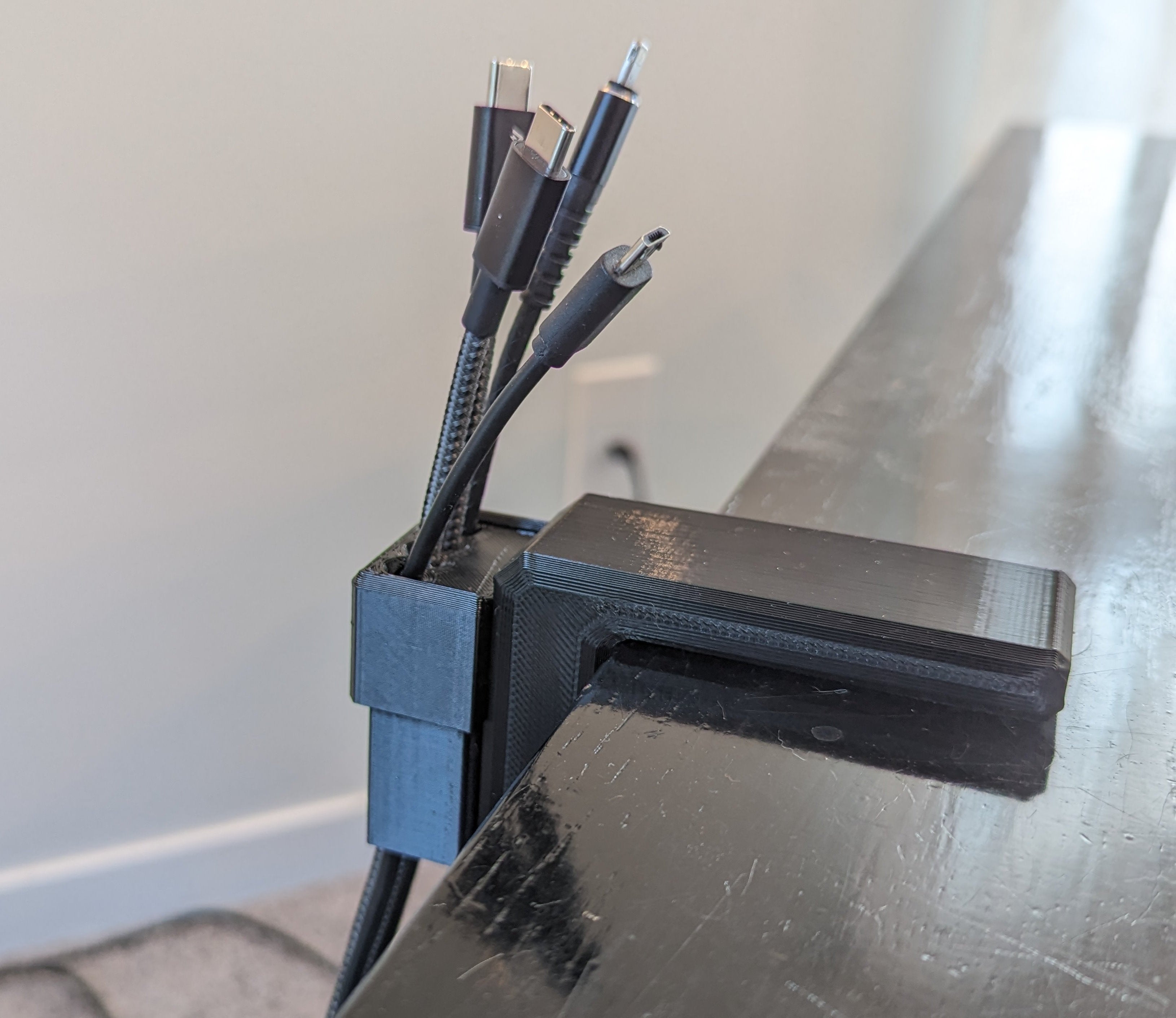 Dette modulære kabelorganisatorsystem er designet til effektivt at håndtere rod af kabler på dit skrivebord. Systemet består af to dele, der nemt integreres med et eksisterende skrivebordsklemme-system, hvilket skaber en robust løsning til kabelstyring. Den ene del fastgøres til klemmen og holder dine kabler organiseret, mens den anden del fungerer som en fastholder for at forhindre dem i at falde ud.