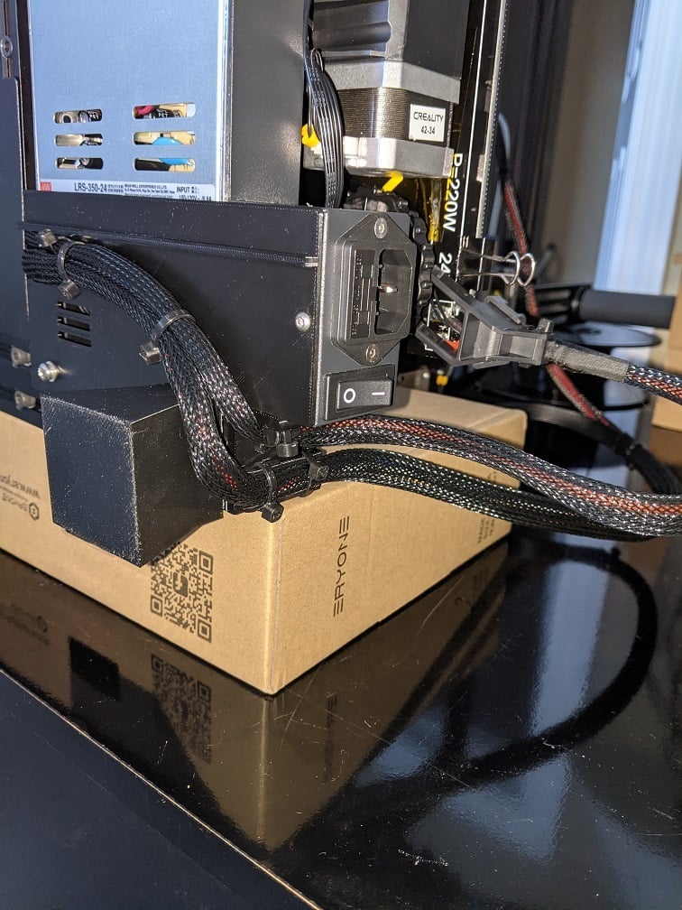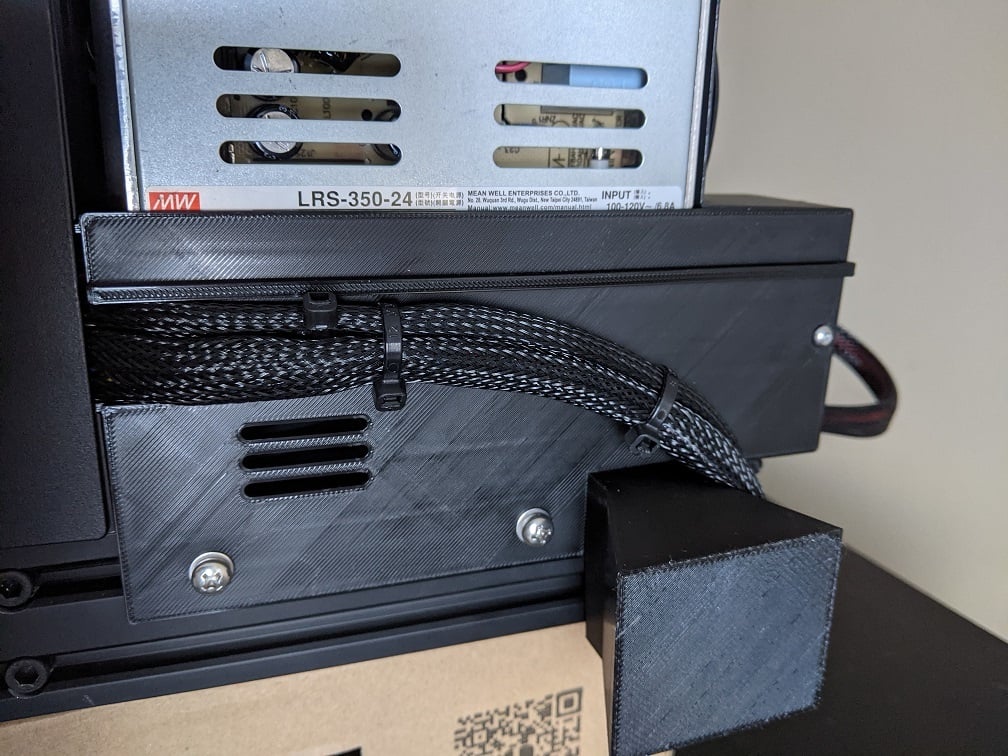 Ved at give en sikker indkapsling bidrager denne komponent til en mere organiseret printeropsætning, hvilket understøtter effektiv **kabelstyring**. Det fungerer som en beskyttende **ledningsholder** for PSU-ledningerne, og hjælper med at forhindre træk eller forskydning af forbindelserne under brug eller flytning af printeren. Dette kan bidrage til at opretholde strømforsyningens integritet og forlænge levetiden for printerens elektriske system. Dækslet integreres rent med Ender 3 V2's eksisterende struktur og tilbyder en pæn og funktionel løsning uden at hindre printerens ydeevne.
