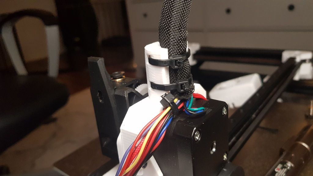 Denne kabelholder er designet specifikt til BLV MGN Cube X-carriage og tilbyder en praktisk løsning til organisering af kabler. Formålet er at holde kablerne fra din direct drive ekstruder sikkert på plads, så de ikke forstyrrer printerens bevægelser under drift.