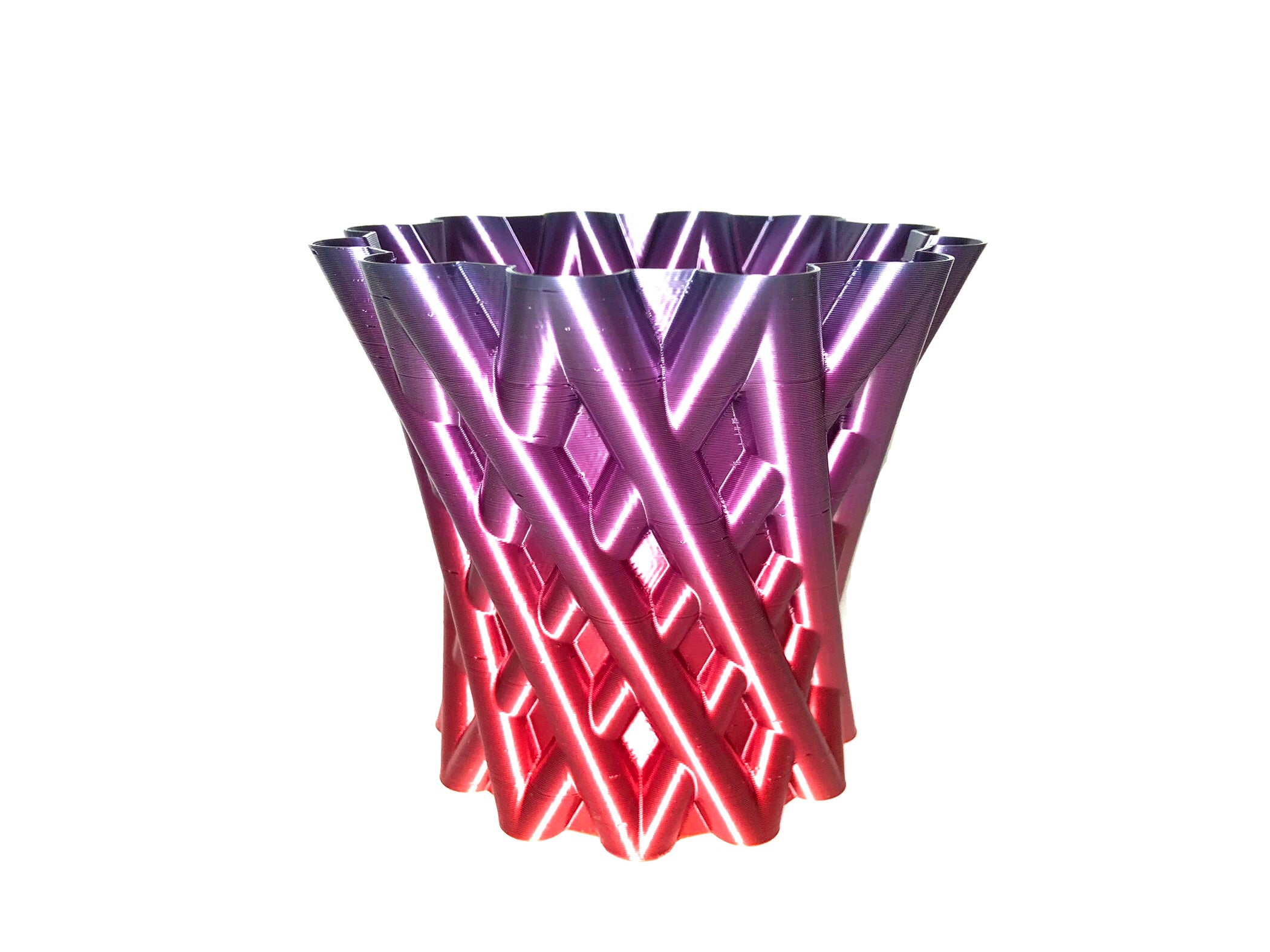 Diamond Lattice Vase er en stilfuld og moderne vase, der tilføjer elegance til ethvert rum. Denne vase har et unikt diamond lattice-mønster, som skaber en iøjnefaldende effekt, når den er fyldt med blomster eller bruges som en dekorativ genstand. Med dens lette og åbne design får den blomsterne til at stråle og kan også bruges til kunstneriske arrangementer.