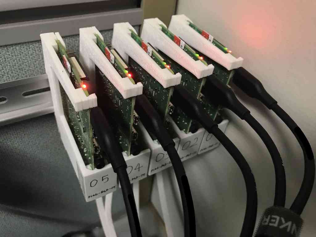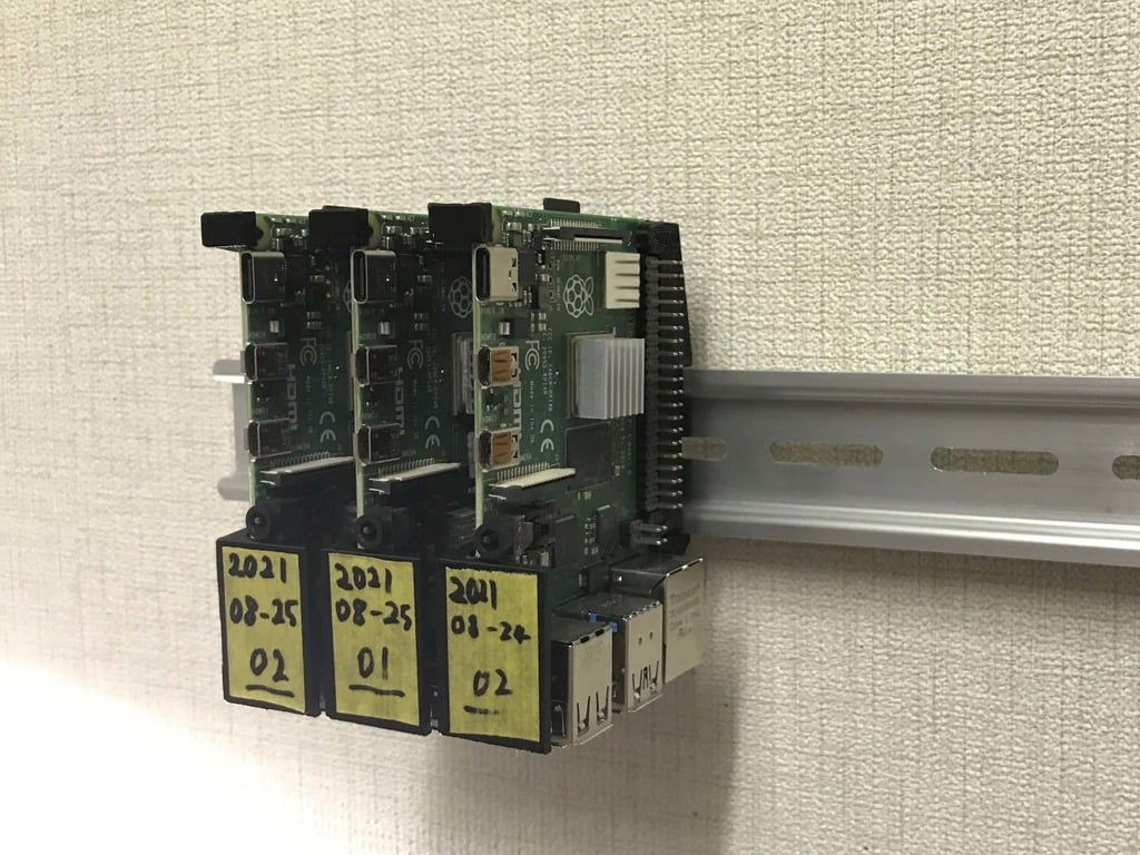 Beslaget, som udelukkende består af 3D-printede dele, sikrer en letvægts-, men robust, montering af din enhed. Denne konstruktion bidrager til en organiseret og pladsbesparende opsætning, hvilket er ideelt, når du ønsker at integrere din Raspberry Pi i eksisterende systemer med DIN-skinner.