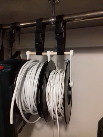 Denne filament spolehænger er en smart og praktisk løsning, der giver dig mulighed for at genbruge tomme filamentspoler til organisering. Den er designet til effektivt at opbevare en række materialer såsom ledninger, kabler, snor og garn, og fungerer dermed som en ideel løsning til at holde styr på dine snore og kabler. Med denne smarte genanvendelse kan du nemt skabe et mere organiseret arbejdsområde og holde orden på både hobbyartikler og elektriske installationer. En diskret 2 mm fillet på hver ende bidrager til produktets stabilitet og gør håndteringen af de opbevarede materialer ubesværet.