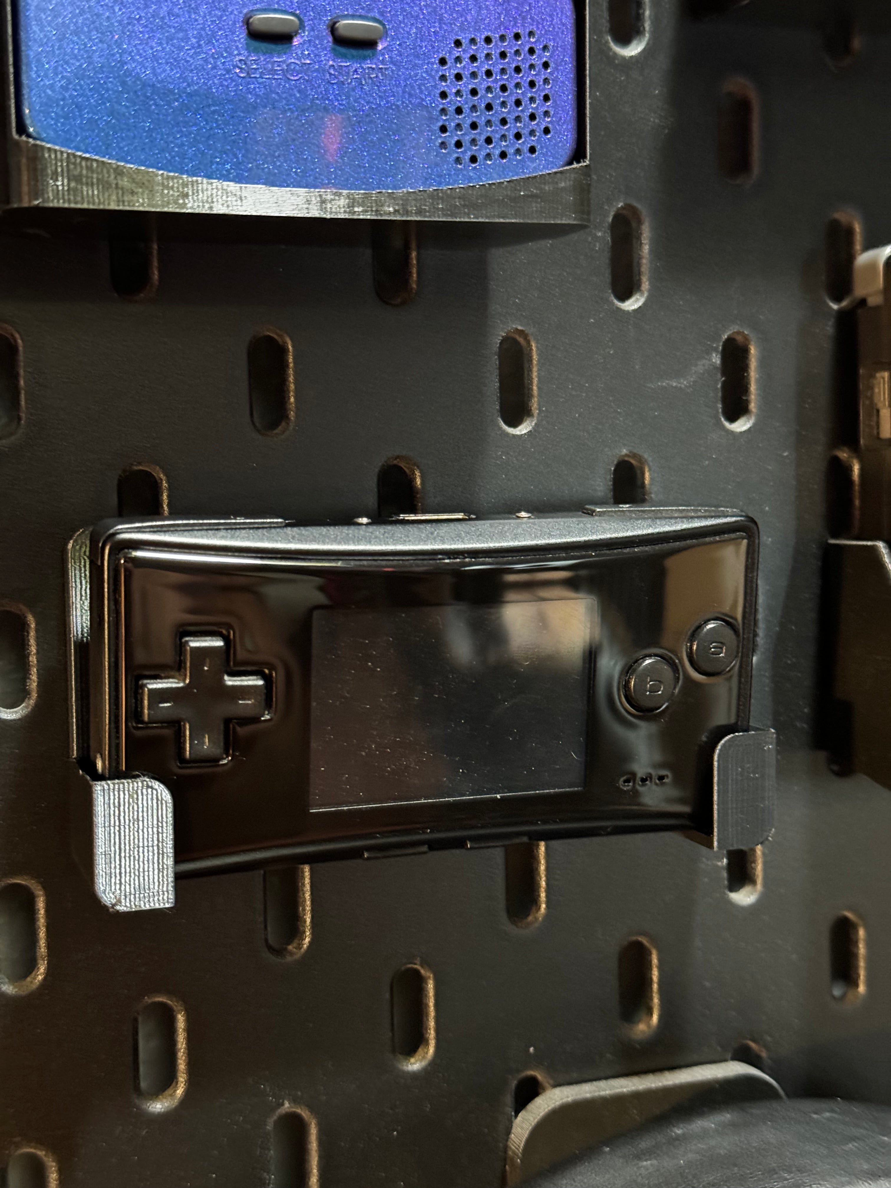 Vis din Gameboy Micro med stil ved hjælp af denne unikke mount, der er designet specifikt til at blive brugt på IKEA Skadis pegboard. Denne mount gør det muligt at sikre din Gameboy Micro på en organisert og præsenterbar måde, hvilket gør den til en ideel løsning til spillere og samlere, der ønsker at vise deres enhed frem. Uanset om du vil have det som en del af din gaming-setup eller blot vil nyde at have din Gameboy Micro synlig, dette produkt kombinerer funktionalitet med et moderne design, perfekt til ethvert rum.