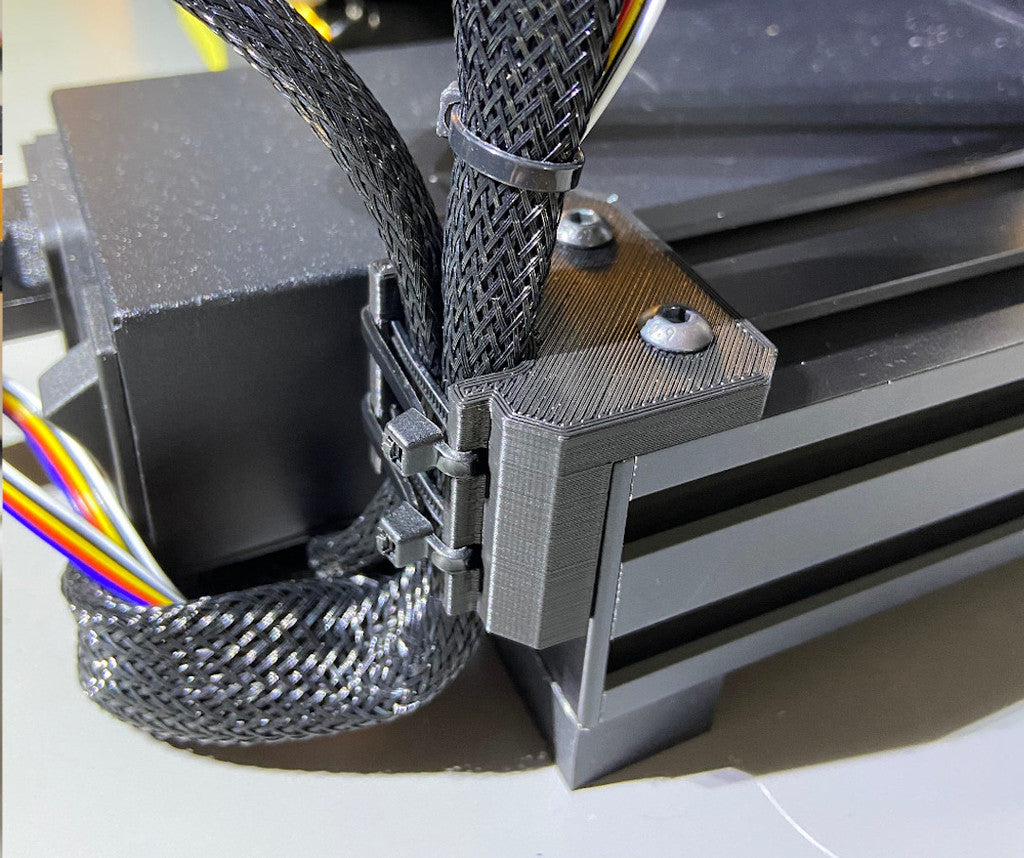 Installationen er enkel og sker via skruer og strips, som fastgør holderen sikkert på printerens bagside. En effektiv kabelklemme, der hjælper med at opretholde et ryddeligt og velfungerende arbejdsområde for din 3D-printer.