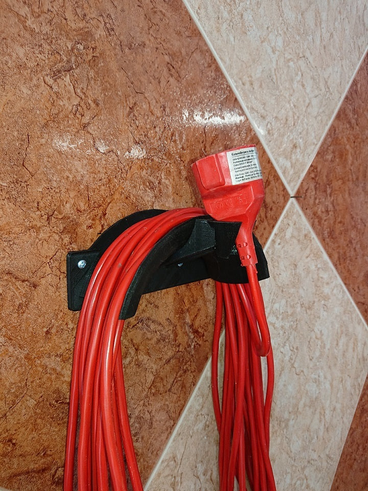 Denne kabelholder er designet til at give en organiseret og sikker opbevaringsløsning for din forlængerledning. Den hjælper med at holde området ryddeligt og minimerer risikoen for sammenfiltrede ledninger eller snublefarer. Kabelholderen er specifikt udformet med en indbygget fatning, der passer til et Shuko-type stik, hvilket sikrer, at forlængerledningen hænger stabilt og er nem at få fat i, når den skal bruges. Det er en praktisk ledningsholder, der bidrager til et mere struktureret miljø, hvor dine kabler er pænt opbevaret og beskyttet.