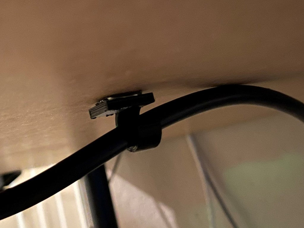 Denne praktiske kabelkrog er designet til at skabe orden og effektiv kabelstyring under dit skrivebord. Den hjælper med at holde diverse kabler, herunder tykkere ledninger fra f.eks. strømskinner, sikkert på plads og diskret skjult. Ved at anvende denne kabelholder kan du nemt forvandle et rodet arbejdsområde til et organiseret og funktionelt sted, fri for sammenfiltrede ledninger.