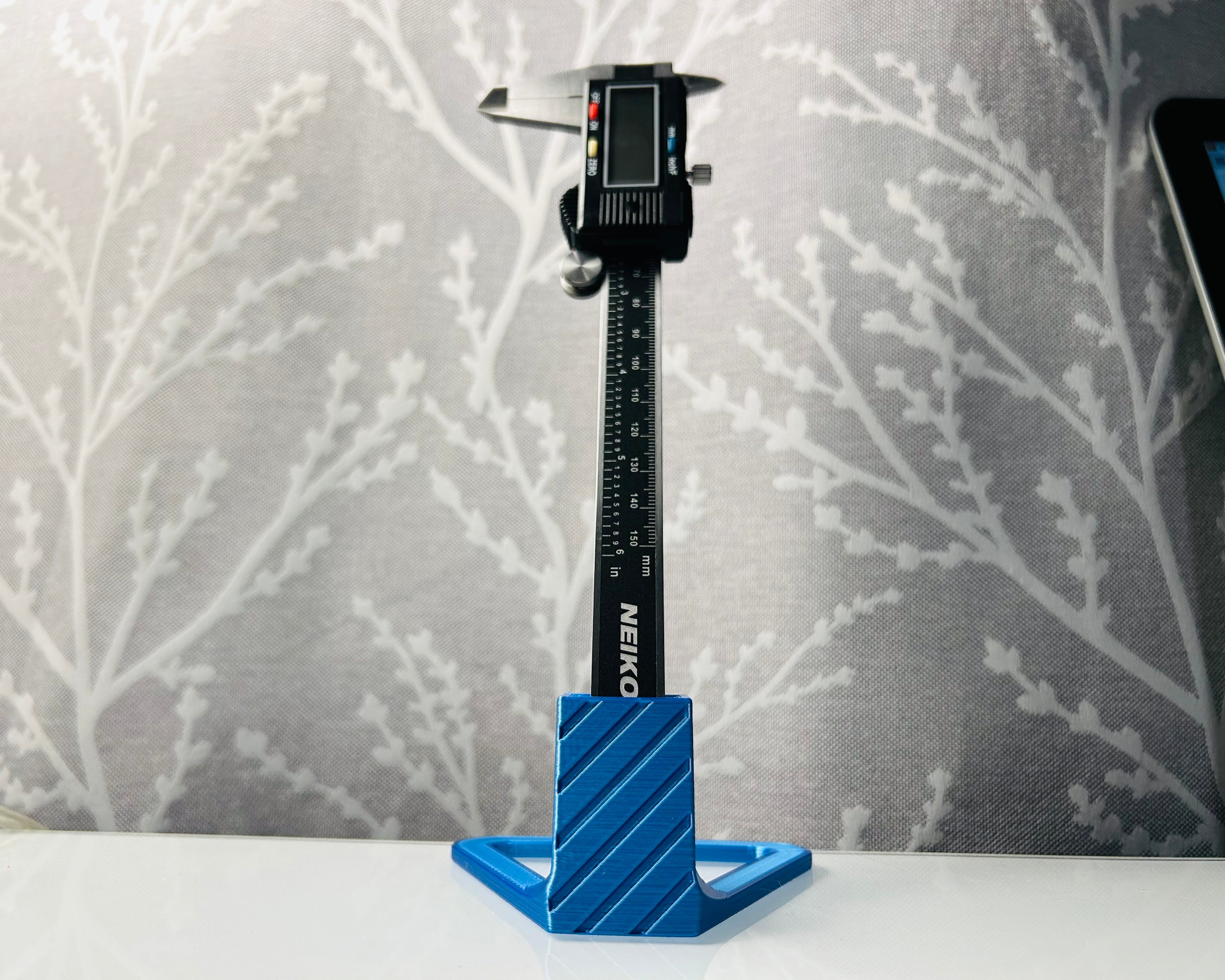 Opdag Compact Caliper Stand, den perfekte løsning til at organisere dine caliper-værktøjer på skrivebordet. Denne kompakta holder har et vertikalt, skrånende design, der gør den ideel til små arbejdsområder. Den kan printes uden understøtninger og er let at anvende ved at indsætte dine calipers sikkert i holderen.