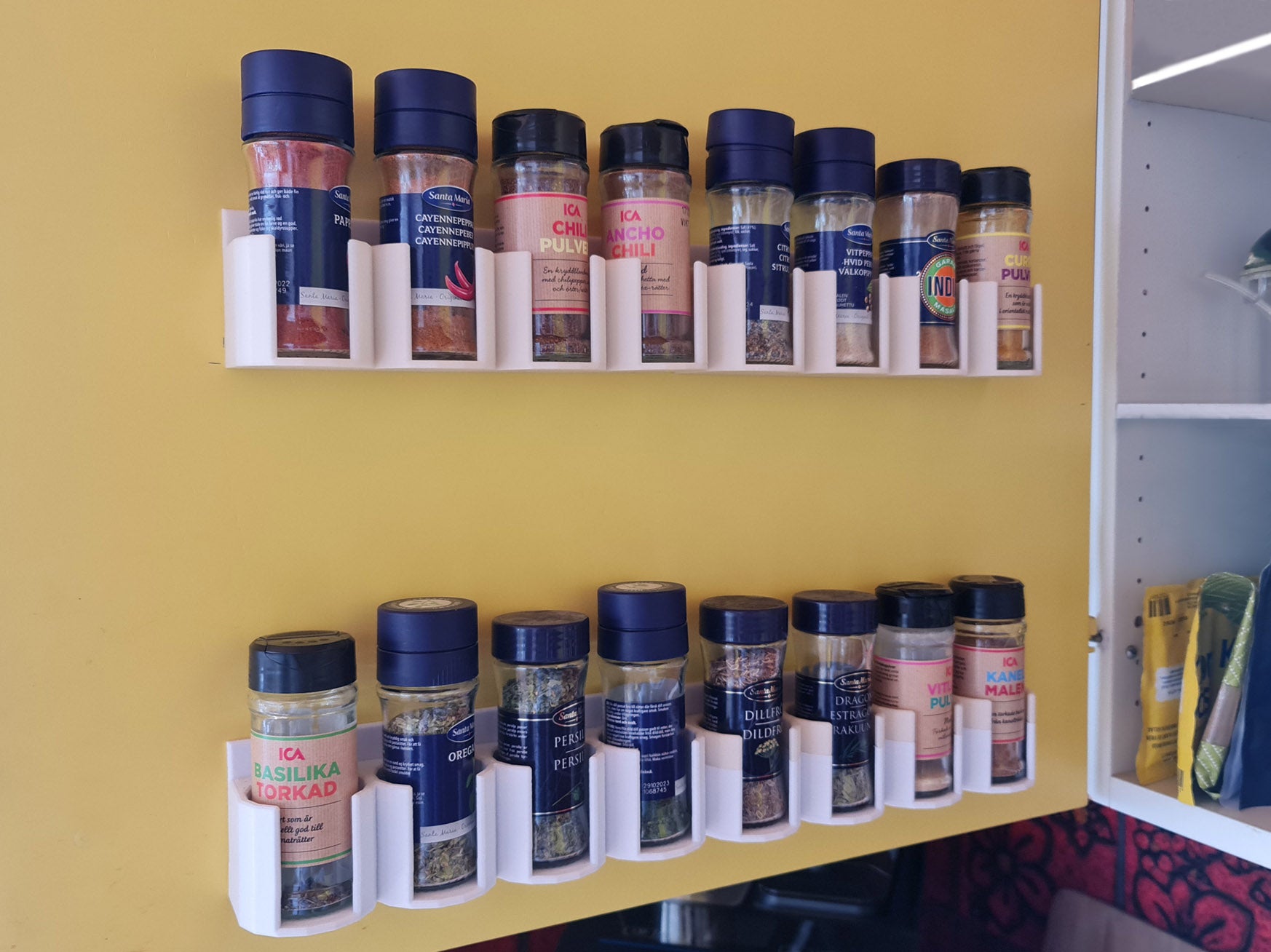 Denne krydderihylde er designet til at rumme forskellige typer krydderiglas og er fremstillet med en robust konstruktion for langvarig brug. Som en smart og pladsbesparende opbevaringsløsning bidrager den til at holde styr på dine krydderier, så de altid er lige ved hånden under madlavningen. Det gør køkkenarbejdet mere praktisk og organiseret.