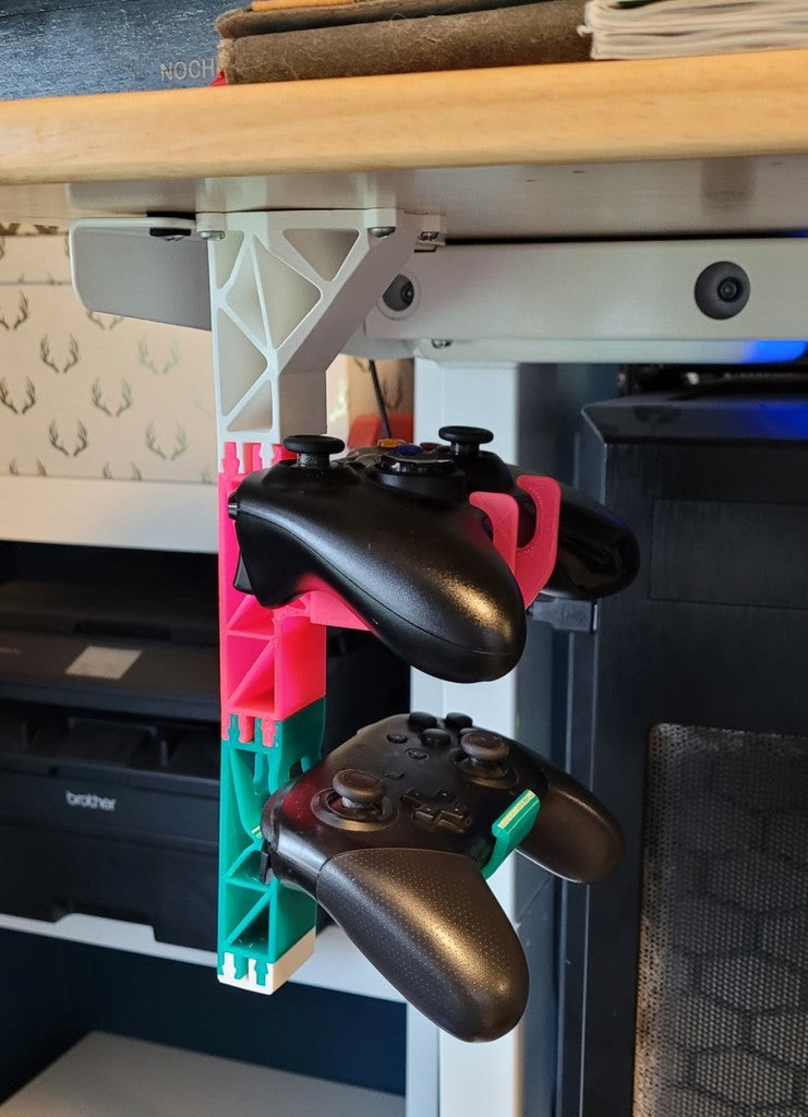 Optimer din arbejds- eller spilleplads med denne modulære controllerholder, der er designet til diskret montering under skrivebordet. Denne innovative løsning frigør værdifuld plads på bordpladen og holder din controller organiseret og let tilgængelig, når du har brug for den. Holderen er fuldt kompatibel med eksisterende controllerbeslag fra det originale stand-design samt populære remixes, hvilket sikrer en problemfri integration i dit nuværende setup. Den er desuden særligt velegnet til opbevaring af Xbox 360 controllere.