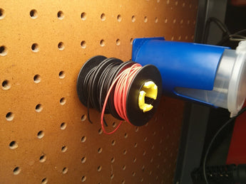 Denne pegboard holder er en smart løsning til at holde styr på dine ledninger og kabler. Den er designet til at rumme op til tre standard ledningsruller med en indre diameter på 1 tomme, som ofte anvendes til mindre elektronikprojekter eller hobbybrug. Med denne praktiske wire holder kan du nemt montere dine spoler direkte på et pegboard, hvilket frigiver værdifuld plads på dit arbejdsbord.
