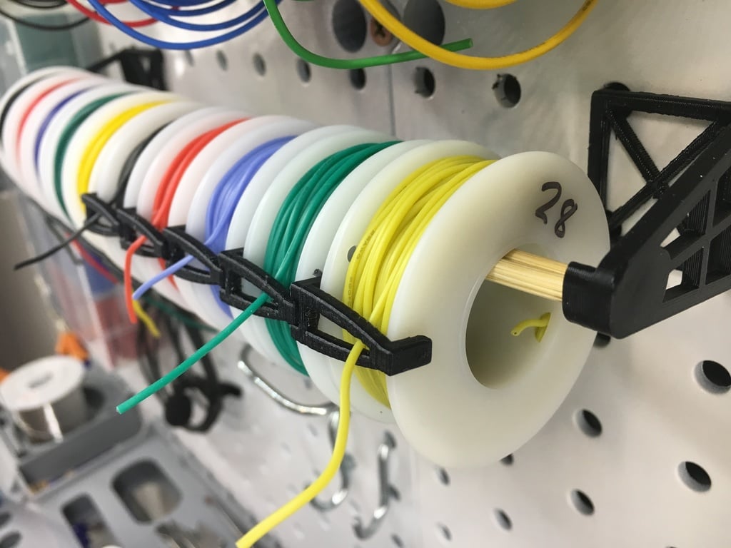 Denne praktiske ledningsholder er designet til at monteres på et pegboard og er ideel til at holde styr på dine ledningsspoler. Den hjælper med at skabe et organiseret og ryddeligt arbejdsområde, hvor dine ledninger altid er let tilgængelige.