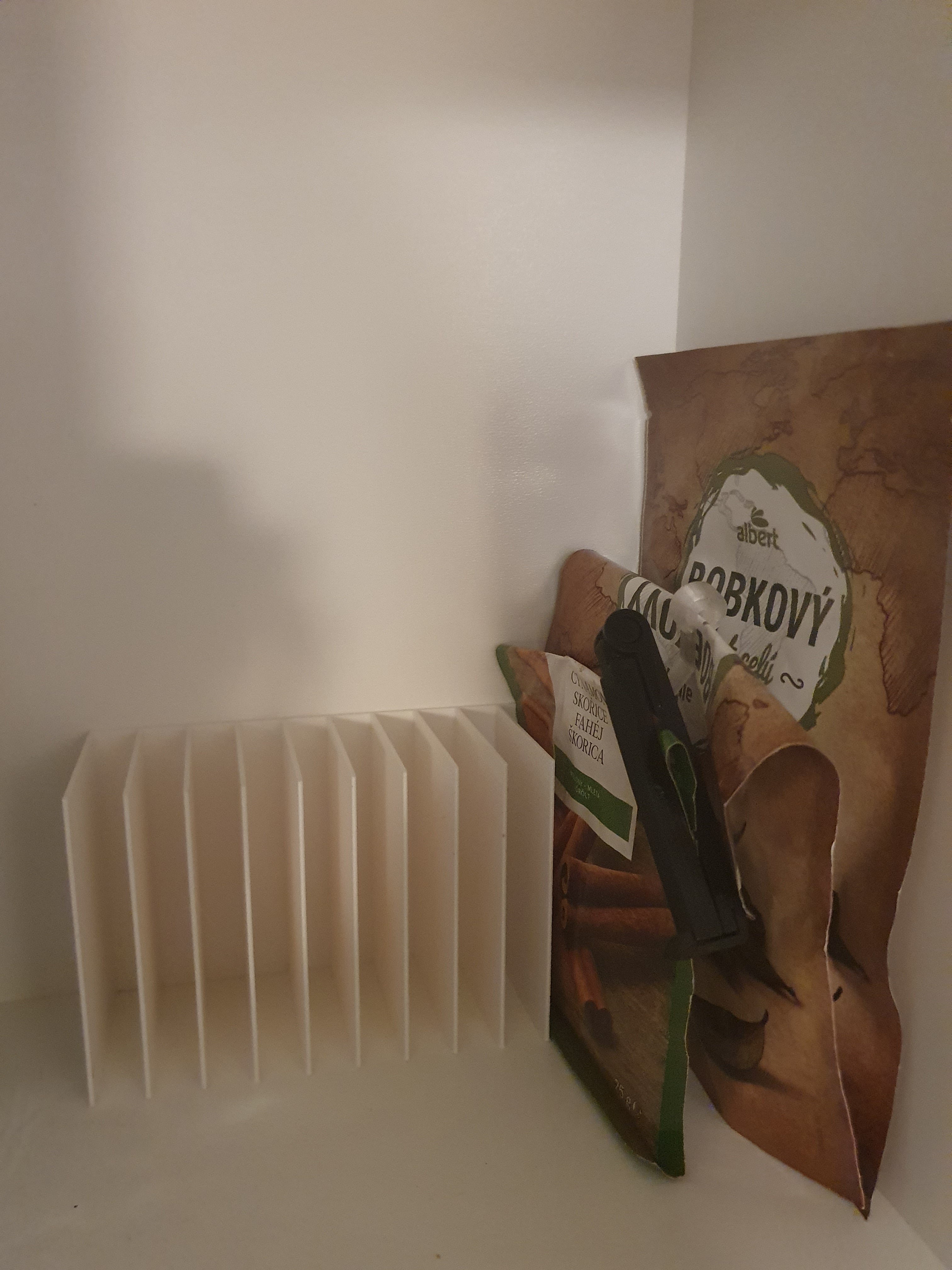 Denne organiser er designet til effektivt at holde dine krydderiposer samlet og let tilgængelige i køkkenet. Med en størrelse på 157x50x74mm passer den nemt ind i de fleste skuffer eller skabe, og den hjælper med at skabe overblik over dine krydderier. De 11 mm afstande mellem rummene sikrer, at hver pose har sin egen plads, hvilket forenkler udvælgelsen under madlavning og reducerer rod. Organiseren kan desuden nemt fastgøres med dobbeltklæbende tape for øget stabilitet, hvis ønsket, hvilket bidrager til en mere organiseret og funktionel køkkenplads.