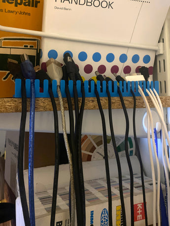 Oplev et ryddeligt og organiseret arbejdsområde med denne simple kabelholder, designet til horisontal montering. Denne praktiske løsning hjælper dig med effektiv kabelstyring og forhindrer sammenfiltrede ledninger. Kabelholderen er udstyret med tre forskellige størrelser af slidser – 5mm, 4mm og 3mm – hvilket gør den velegnet til en bred vifte af kabler og ledningsender. Den monteres nemt og sikkert med tre skruer og er ideel til placering på kanten af en hylde eller et bord. Ved at holde dine kabler på plads sikrer denne ledningsholder, at de altid er tilgængelige og nemme at identificere, samtidig med at du opretholder et pænt og funktionelt miljø, både hjemme og på kontoret.