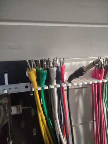 Denne praktiske Skadis Eurorack kabelholder er designet til at skabe orden i dit musikstudie eller arbejdsområde. Den integreres let med dit IKEA Skadis system og tilbyder en effektiv løsning til opbevaring af dine Eurorack-kabler. Med denne smarte ledningsholder kan du nemt forhindre sammenfiltrede kabler og rod, hvilket sikrer, at dine Eurorack-kabler altid er organiseret og let tilgængelige. Optimer din kabelhåndtering og opnå et mere strømlinet og overskueligt setup.