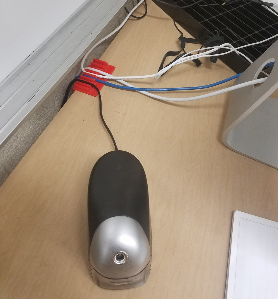 Denne kabelholder er designet til at skabe orden og minimere rod bag på dit skrivebord. Den fungerer som en diskret skrivebordskabelorganisator, der holder dine ledninger pænt samlet og ude af syne, hvilket bidrager til en mere ryddelig og funktionel arbejdsplads.