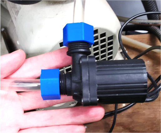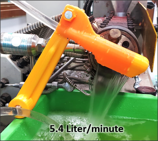 Hovedenhedens design gør det muligt at tilslutte den til et fleksibelt rør med en diameter på 10 mm, hvilket gør installationen hurtig og problemfri. For optimal køling anbefales det at bruge en justerbar 24V pumpe, der kan levere mellem 1,5 og 5 liter vand pr. minut. Indstilling af flowet til cirka 2 l/min giver en ideel balance mellem effektiv køling og minimalt pres på filamentet.