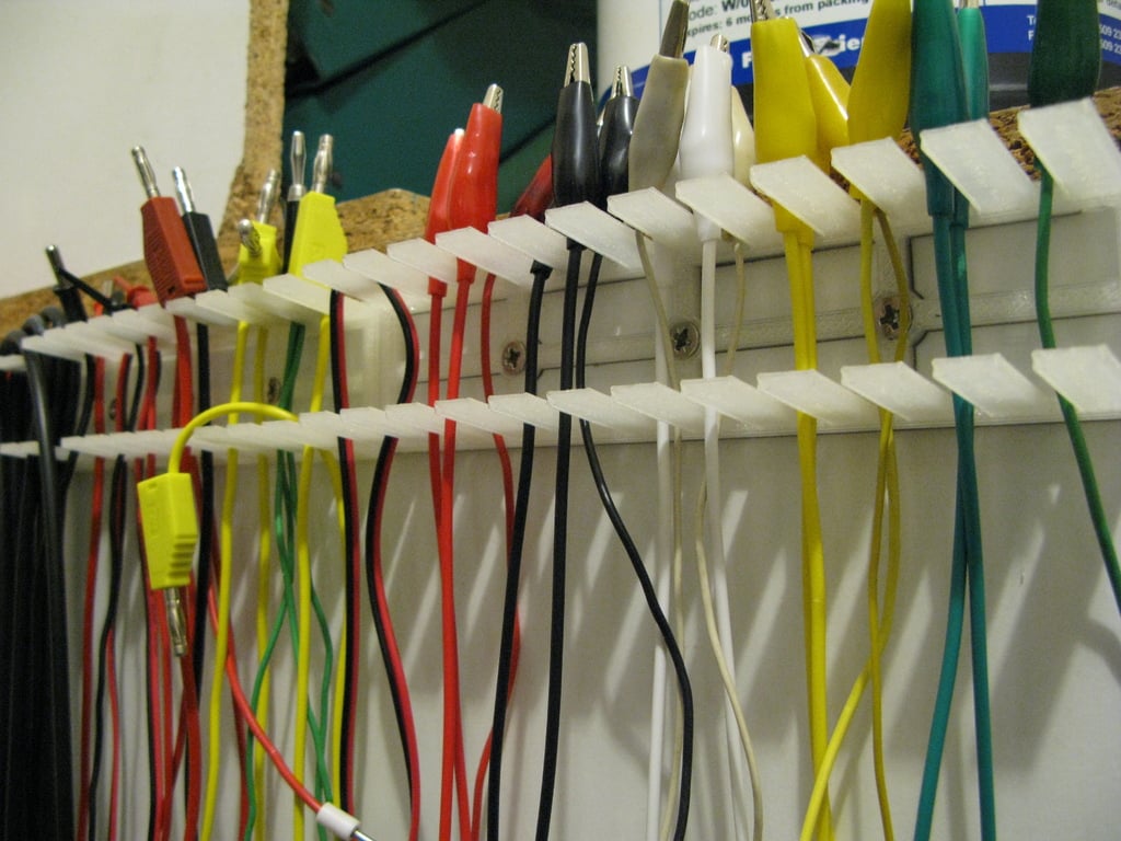 Denne praktiske ophænger og organizer er designet til at holde styr på dine testledninger. Den tilbyder en nem løsning for at holde dit arbejdsområde ryddeligt og dine kabler organiseret. Ophængeren har justerbare afstande mellem holderne, hvilket gør det muligt at opbevare et bredt udvalg af testledninger og andre elektronikkabler, uanset deres tykkelse. Dette sikrer, at dine nødvendige værktøjer altid er let tilgængelige og overskuelige, hvilket optimerer effektiviteten ved dine elektronikprojekter.