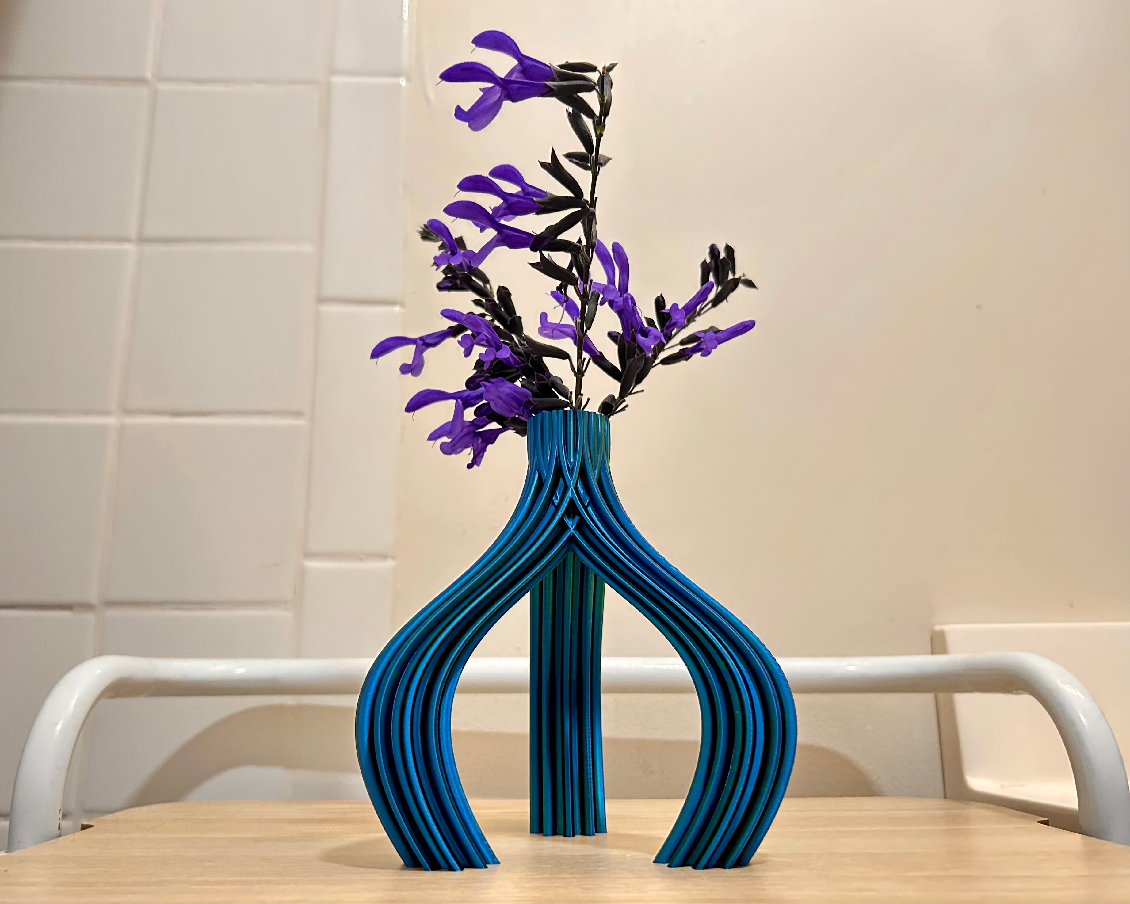 Vælg denne vase for at give et blikfang til dit rum med sit spændende design. Den fungerer godt alene eller i kombination med andre vaser for at skabe en dynamisk udstilling. Uanset hvor du vælger at placere den, er Tri-Gear vasen et sikkert samtaleemne.