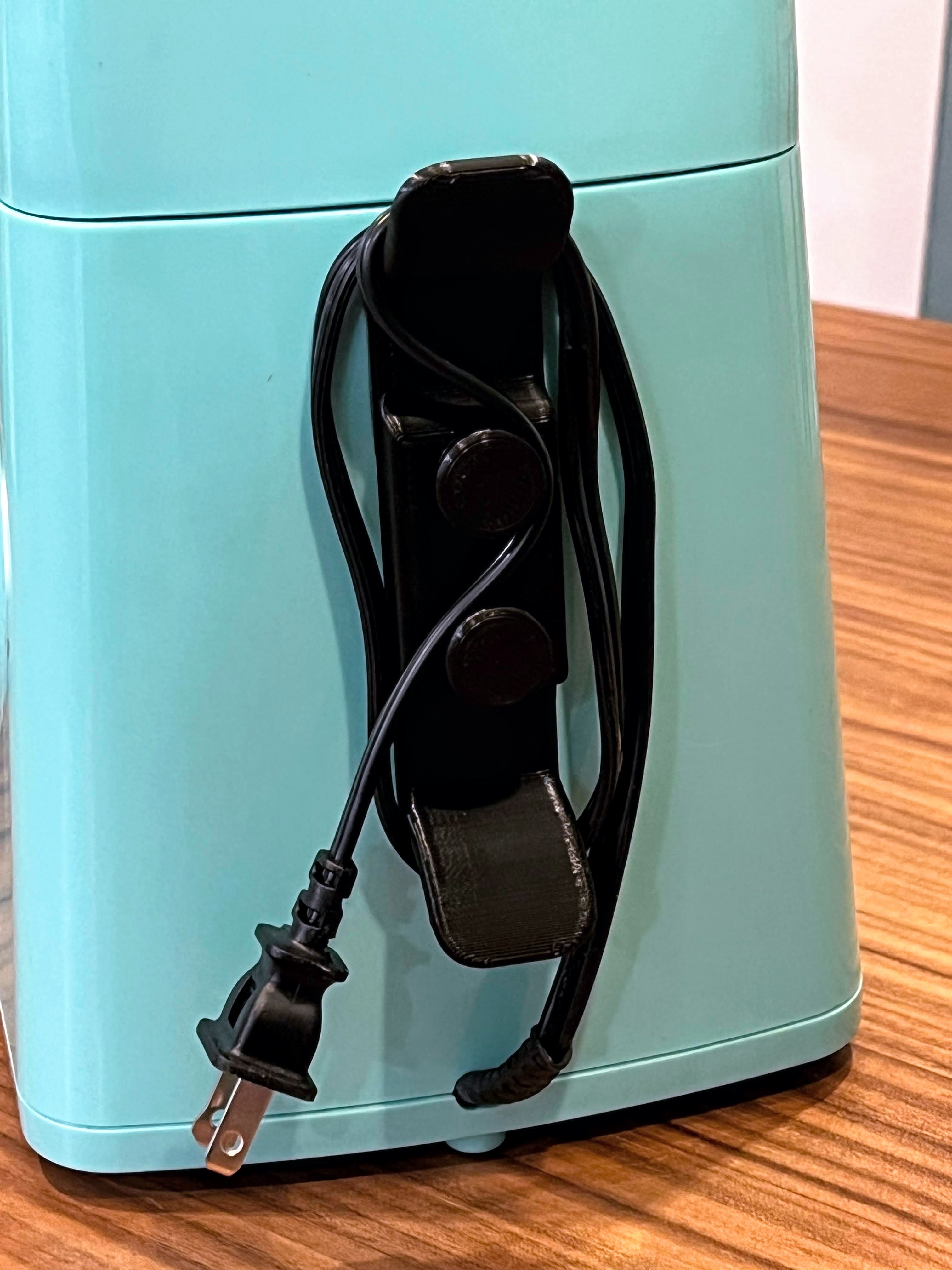 Denne praktiske kabelorganisator er designet til at hjælpe dig med at holde dine ledninger pænt samlet og organiseret. Den monteres nemt på bagsiden eller siden af dit apparat og giver en enkel løsning til at styre ledninger af forskellige størrelser, hvilket eliminerer rod i køkkenet eller andre områder. Med to integrerede knopper kan du nemt vikle overskydende ledning rundt og fastgøre den løse ende, så den ikke hænger og skaber uorden. Dette forbedrer ikke kun æstetikken, men mindsker også risikoen for sammenfiltrede ledninger og potentielle snublefarer. En ideel kabelholder for et mere ryddeligt og funktionelt hjem.