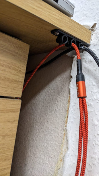 Træt af sammenfiltrede ledninger og et rodet skrivebord? Denne USB kabelholder er den ideelle løsning til at skabe orden. Designet til at holde op til tre USB-kabler med en diameter på maksimalt 6 mm, sikrer den, at dine kabler forbliver på plads og er let tilgængelige. Den kan nemt monteres med skruer, f.eks. under et skrivebord, hvilket frigør værdifuld plads og skaber en mere organiseret arbejdsstation. Med denne kabelholder får du en pæn og funktionel kabelstyring, der effektivt forhindrer ledningskaos. En praktisk ledningholder for et mere strømlinet miljø.