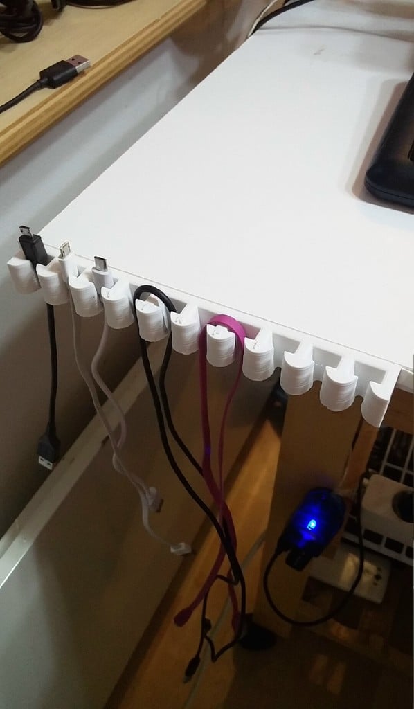 Denne USB kabelholder tilbyder en enkel og effektiv løsning til at håndtere de mange USB-kabler, der ofte skaber rod på skriveborde og arbejdsområder. Den er designet til at holde dine kabler pænt organiseret og let tilgængelige, og denne kabelholder bidrager til at opretholde et ryddeligt miljø. Den er velegnet til forskellige omgivelser, fra hjemmekontorer til professionelle arbejdsstationer, og sikrer, at dine opladnings- og datakabler altid er inden for rækkevidde og fri for sammenfiltring. Det praktiske design bidrager til en mere effektiv og visuelt tiltalende arbejdsplads.