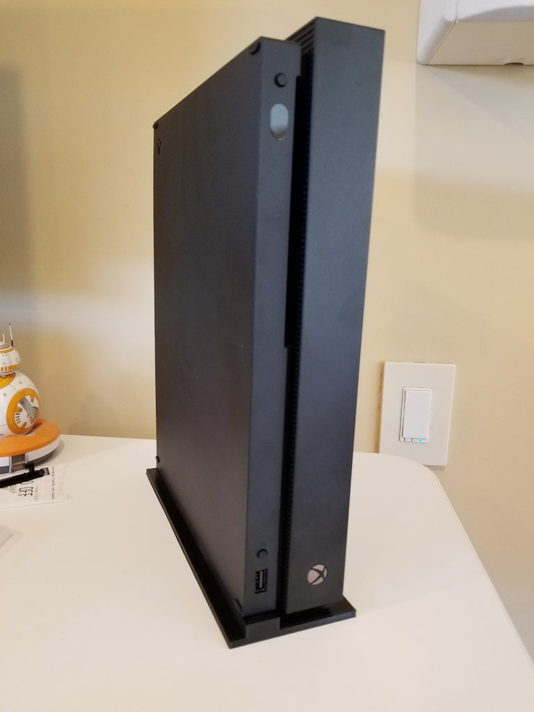 Denne vertikale stand er designet specifikt til Xbox One X og giver dig mulighed for at placere din konsol oprejst, hvilket både sparer plads og tilføjer et strømlinet look til dit gamingområde. Inspirationen fra Scorpio Edition giver standen et stilrent og funktionelt design, der komplementerer din konsol.