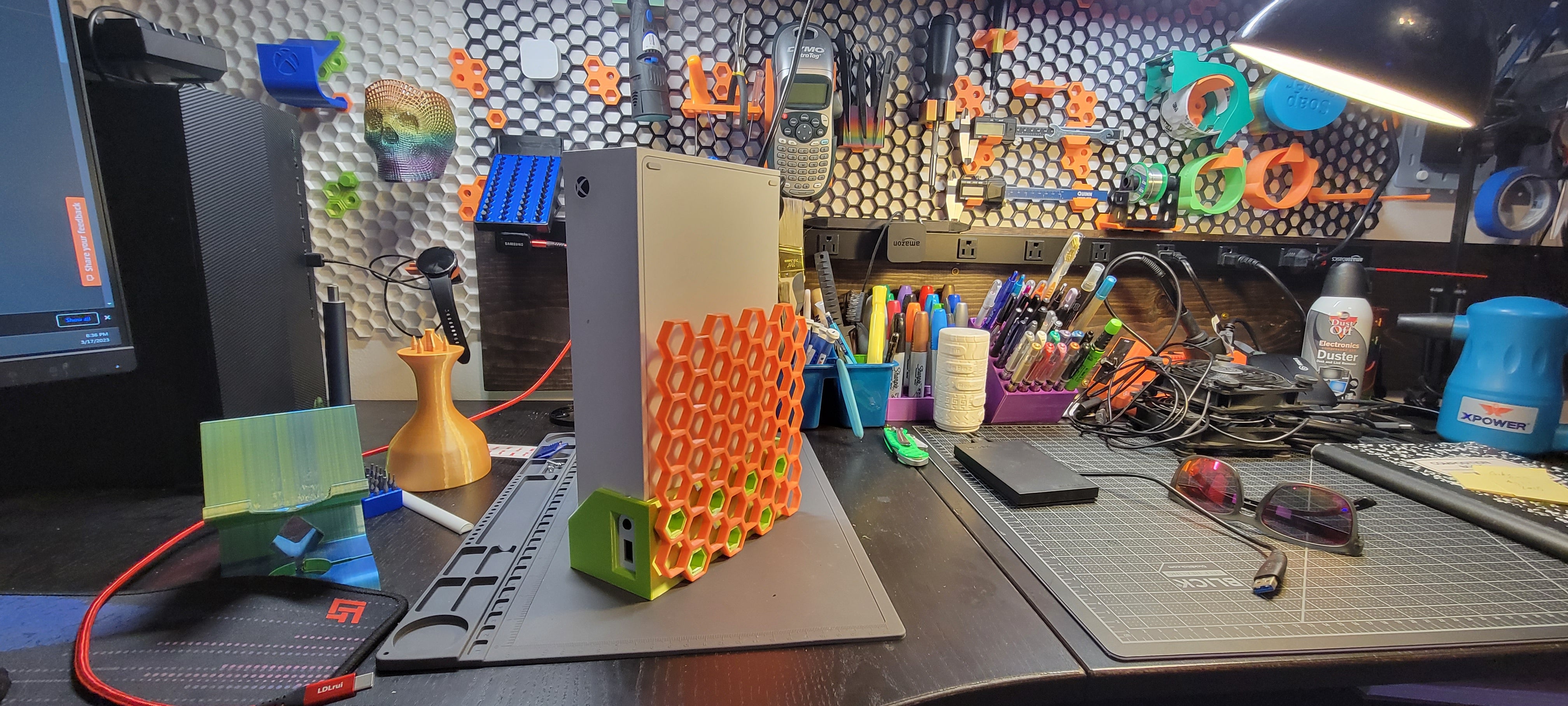 - Frigør værdifuld plads på skrivebordet eller skænken for et mere organiseret gaming-område.