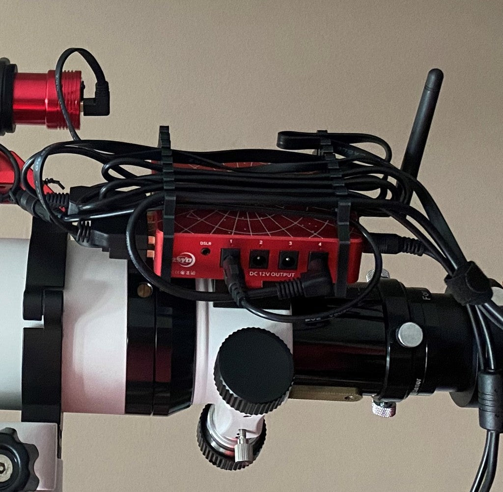 Uanset om du er engageret i astrofotografering eller blot ønsker at forbedre din teleskop-opsætning, sikrer disse klips, at dine kabler forbliver på plads. For den bedste effekt og stabilitet anbefales det at anvende to klips, en på hver side af din ASIair Plus, for en sikker og stabil fastgørelse af alle tilsluttede ledninger.