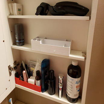 Denne praktiske organizer er designet til effektivt at holde små genstande samlet og organiseret, især i medicinskabe. Den hjælper med at forhindre, at indhold falder ud, når skabet åbnes, og sikrer, at alt er nemt at finde og tilgå. Udover dens anvendelse i medicinskabet er organizeren også velegnet til at skabe orden på skriveborde, hylder eller andre bordplader, hvor der er behov for at samle småting. Med denne organizer kan du nemt skabe et ryddeligt og overskueligt miljø i forskellige rum.