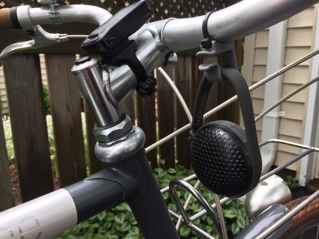 Beslaget holder højttaleren sikkert på plads, forhindrer den i at glide ned ad styret og støde mod styrrøret. Samtidig er designet udført, så det er let at montere og afmontere højttaleren efter behov. Installationen er ligetil og kræver kun et enkelt kabelbinder for at fastgøre holderen solidt til cykelstyret.